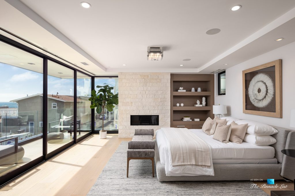 The ground level includes a beach room with stone fireplace / media wall leading to an outside patio, an en-suite guest room, additional laundry and full bath as well as access to the three-car garage. The basement level contains a home theater, temperature-controlled wine storage, full bar with counter seating and a family room with nearby bath. A four-stop elevator ensures easy access to all that this home has to offer. With an enviable location just steps to the sand in the heart of Manhattan Beach, this beautifully appointed new construction is not to be missed.