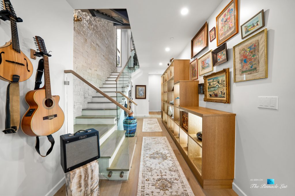 Three of the bedrooms and the laundry/utility room are located on the main entry level, which includes the ocean view master retreat. The master bath has been upgraded with custom floating shelving and designer light fixtures, while the master closet has been expertly finished by California Closets.