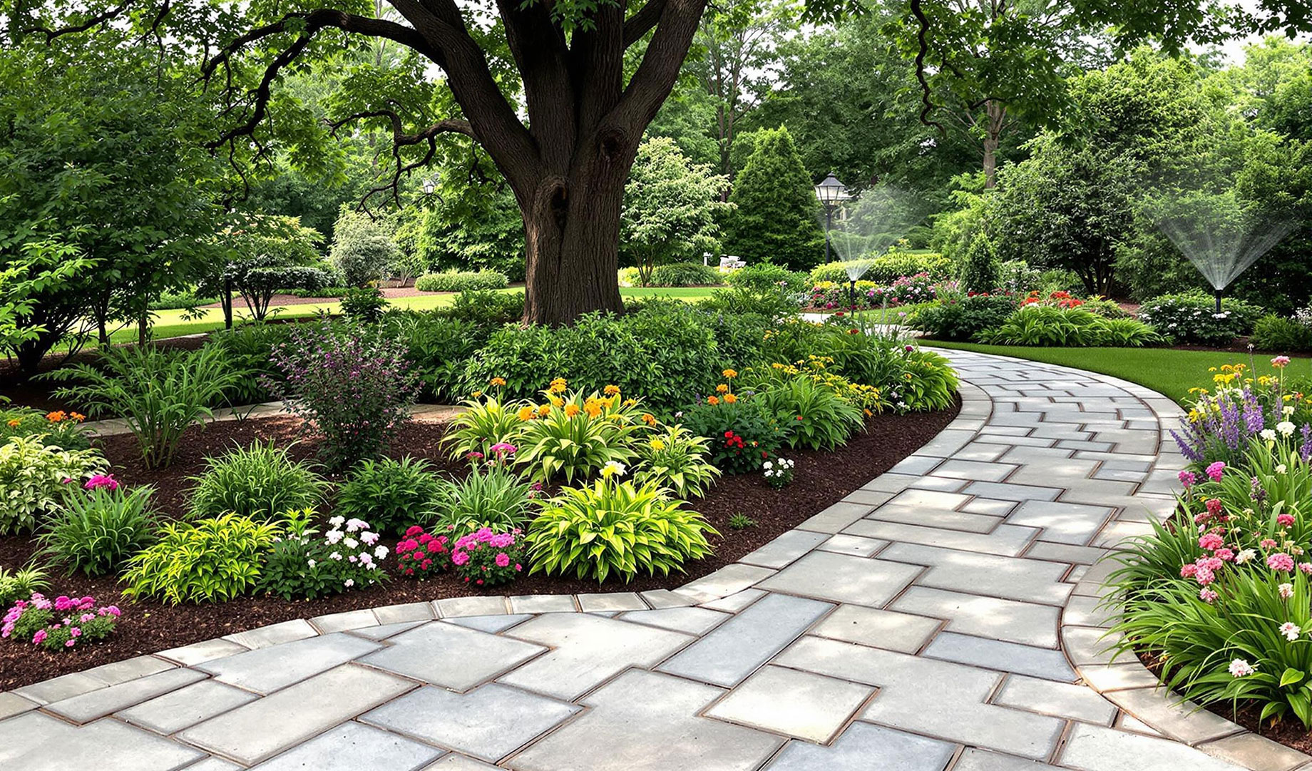 A well‑designed irrigation system matches water delivery to each zone’s needs. Drip irrigation delivers water directly to plant roots, which can save thousands of gallons annually compared with spray systems—up to 30,000 gallons per year in some cases. Smart controllers adjust schedules based on rainfall and temperature, so you only water when necessary.