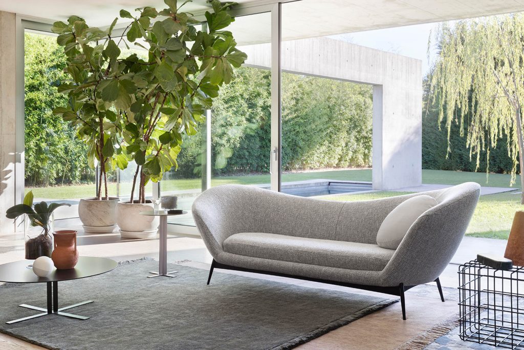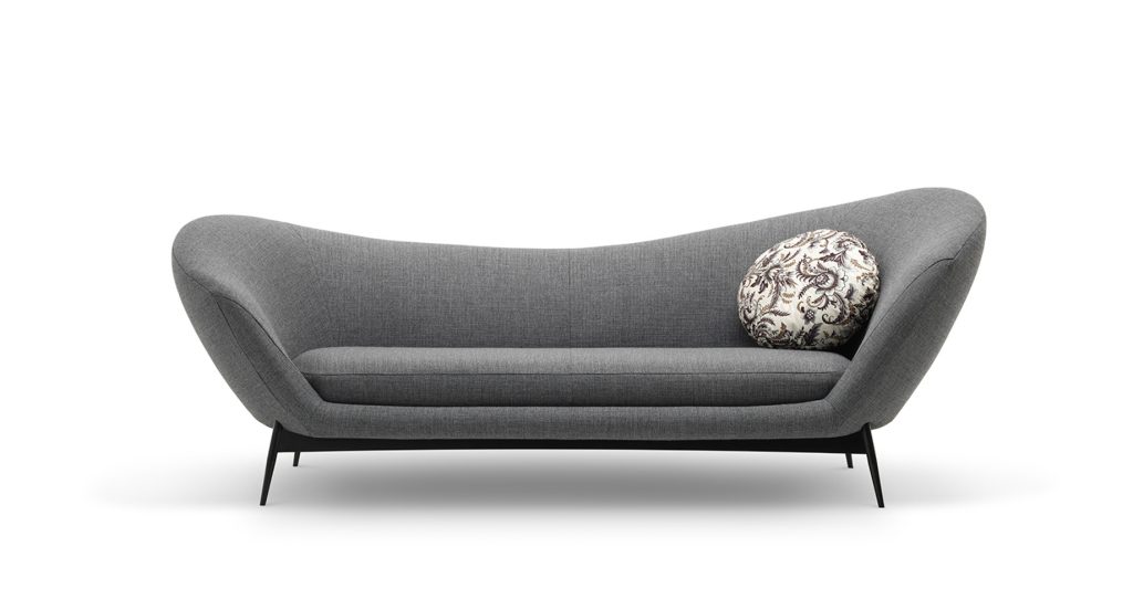 Named Oltremare, because all things have a soul, and every soul has a name. Oltremare encloses within its inlets the classic and the modern. The curve is a line that can be tamed: it forms a wave, a fold, it creates a place, but it also offers an escape route. In our utopian world we investigated the relationship between the curved line and the act of seating, asymmetric shapes that become backrests and sink into extremely comfortable seats pushing past the rectangular schemes so dear to the sober lines of designing sofas.