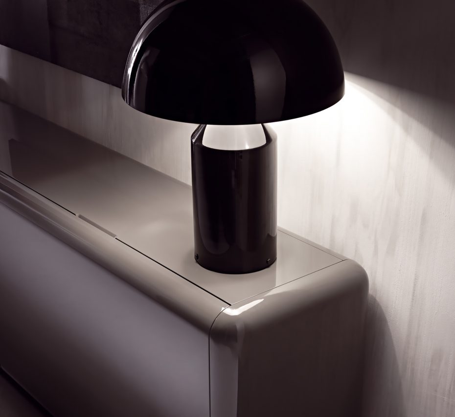 It’s not retro or even sci-fi themed, but like an object that has landed from space, the Superego credenza surprises for its perfection. The body is embraced with a gesture of strong quality by two reflecting steel shells, presenting a perfectly balanced and rounded volume. It appears like an otherworldly soft and pure monolith.