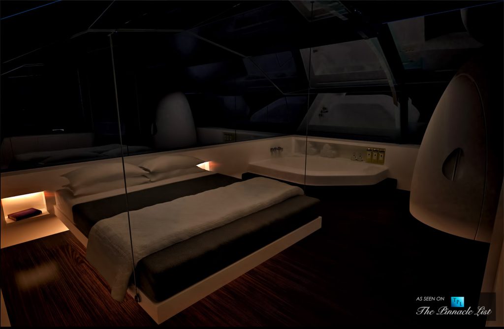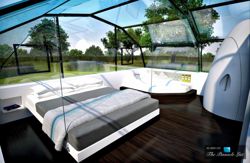 Through an iPhone app, residents are able to turn the smart glass panes of the structure from transparent to translucent, for privacy or for some needed shuteye.