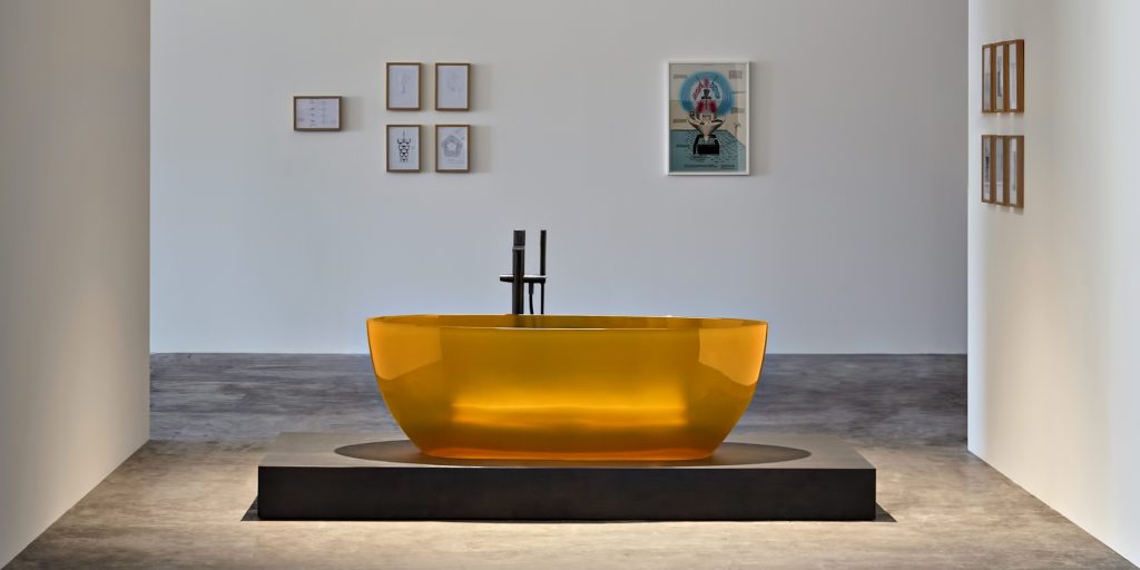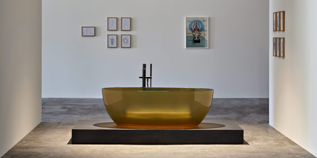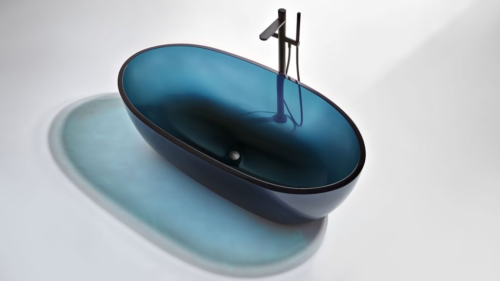 Reflex delivers on that notion with a luxury bathtub that allows you to have something truly unique and exclusive in your home. A transparent purity of geometry with a poetry of opposites, Reflex exemplifies harmony and minimalism with lightness and solidity that conveys timeless beauty, with elegance and refined character. The whimsical transparency of the surface makes it possible to observe the magical flow of the liquid, to read its movements, to follow its strength.