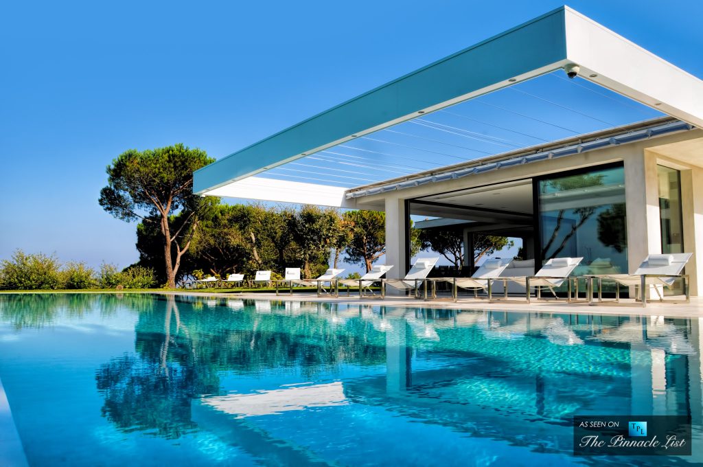 The 500m2 villa boasts two levels featuring eight bedrooms (4 king size and 4 queen size) as well as plenty of communal living space to enjoy. A common stylistic feature across Villa Paradise’s modern interior are the floor to ceiling windows that allow for unobstructed panoramic views across the French Riviera coastline as well as plenty of natural lighting.