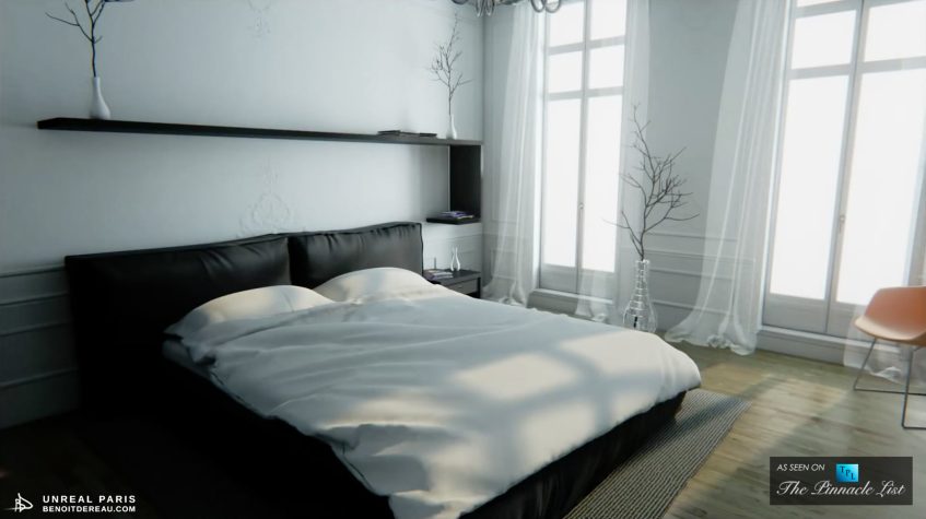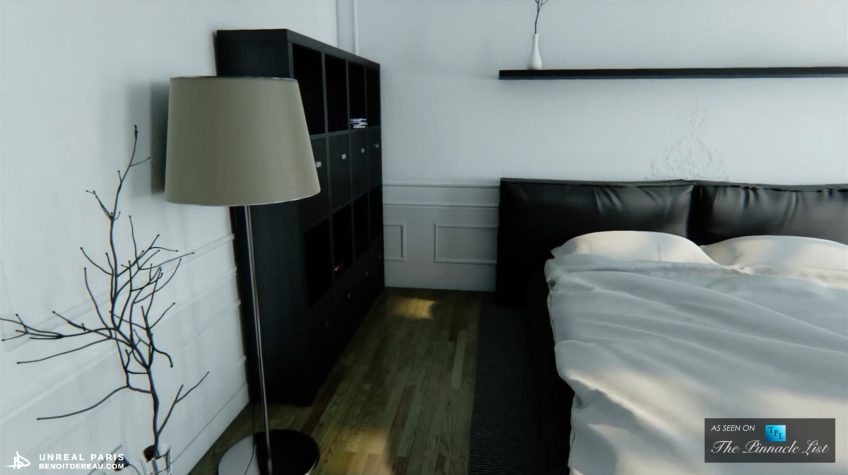 The virtual world of our imaginations may soon turn into visual reality through conceptualization technology that is able to create virtual environments that allow us to experience what was only previously possible in our dreams. In the future, dare to dream, may be the forte required to design and develop a new sphere of augmented reality that blurs the line between what’s real and what’s computer-generated. With the aid of virtual reality, everything changes. Below are some incredible screenshots of Benoît Dereau’s Unreal Paris from a virtual walkthrough. Featured in the screenshots are a bedroom, living room, kitchen, and bathroom – typical rooms for any apartment. Following the screenshots is an official video of Unreal Paris.