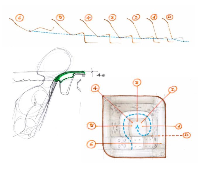 “I wanted to design a real, complete experience; from the interface to the accessibility, from the progressive seat position to the complete drain inspired by the Nautilus shell. Simple and effective.” – Dodo Arslan.
