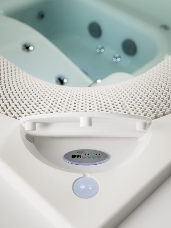 A truly unique and beautiful design inspired by the Nautilus seashell, the Vertus tub appears as if were molded by water with a unique spiral shape that guarantees a quick and complete draining when emptied, avoiding stagnation. Vertus includes an exclusive infinity swimming pool effect with automatic levelling technology, which refills the hot tub when water is lost through use and evaporation.