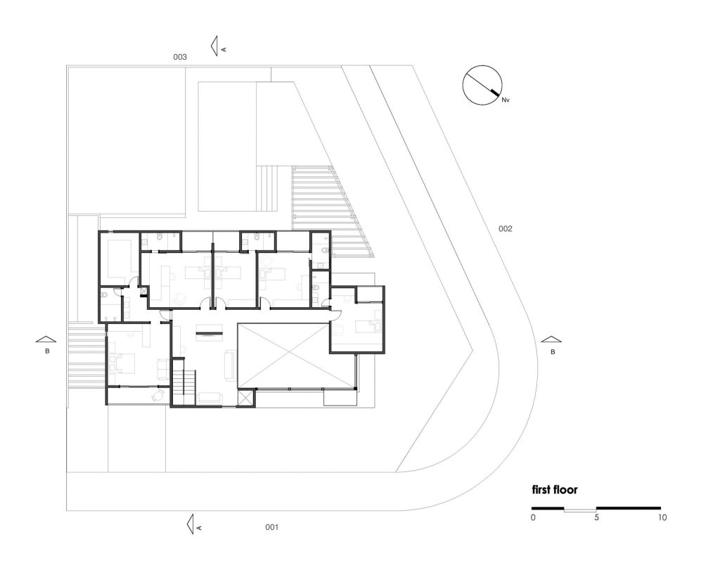 The casual atmosphere of the design is reinforced by an open transition of indoor/outdoor living, allowing residents and guests to move seamlessly between the main living spaces to the picturesque wood-laden pool deck and outdoor lounge areas.