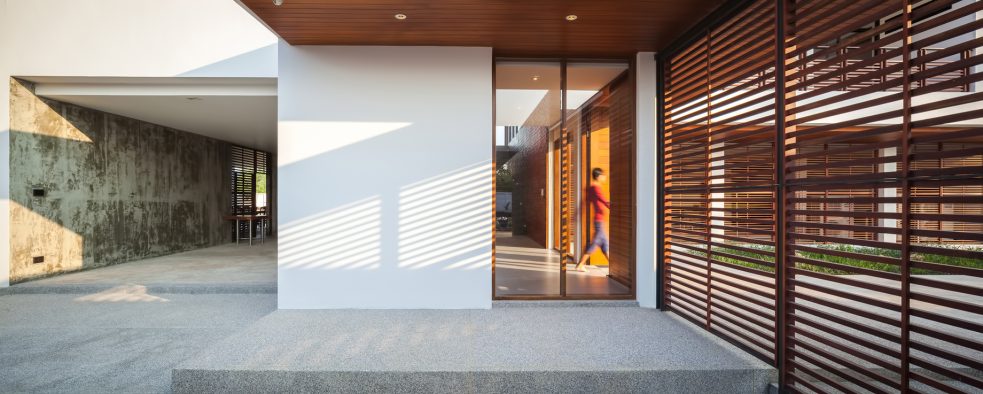 The front of the house is divided into two sides. At the southern side of the house is where the entrance circulation, parking space, and service area are situated. On the other hand, a private open area where three pars golf course is situated at the northern side of the house. At this side of the house, it is wide open to splendid landscape, sea breeze, and the golf course that is overlooked by mountain ranges.