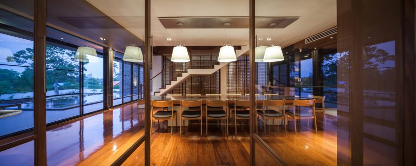 Baan Bang Saray is a luxury vacation house located in Chon Buri province, which is 2 hours away from Bangkok by car. This house is planned to be a residence for the family to spend the hiatus from the work relaxing during vacations. Each personal space within the home can be divided into sub-personal spaces with adjustable areas in both proportion and size in response to different needs.