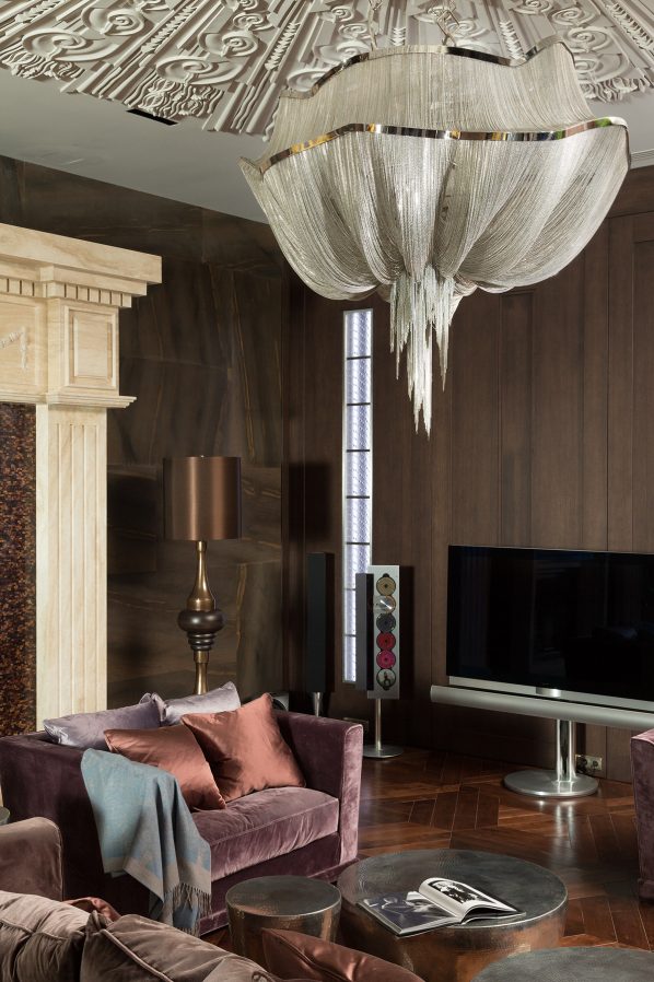 The interior style is based on elegant Art Deco luxury, artistic sense of it, and the peculiar mood of the splendid epoch. Architects decided to create a modern and unique interior, but not a copy in the literal sense. It was important to reproduce the spirit and the mood using not only handmade techniques, but also new technologies and own understanding of the contemporary and comfortable house.