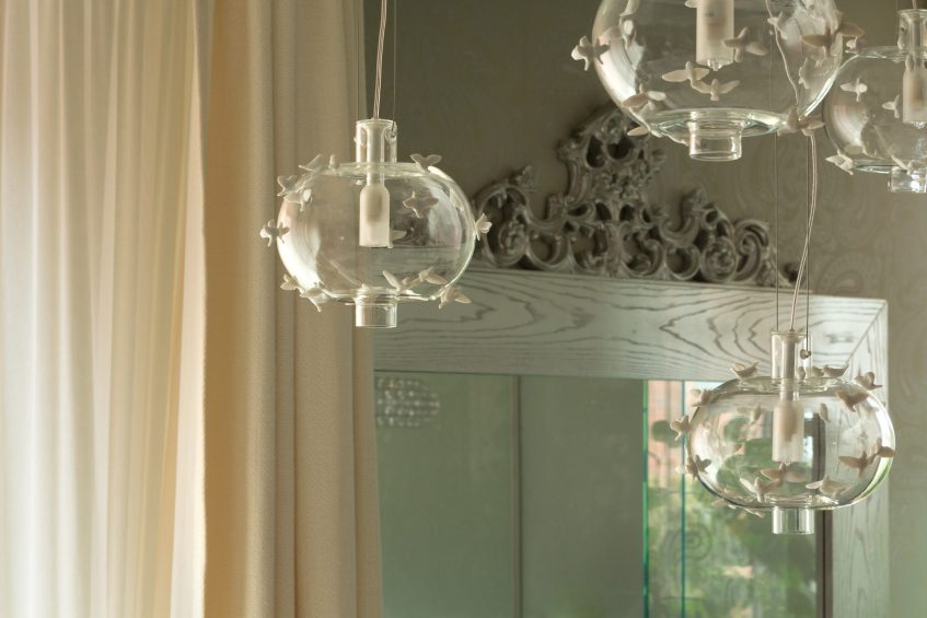 The interiors are furnished with products by Baker, Promemoria, Giorgetti, Turi, Baxter, Tom Dixon, Alivar, Allmilmoe, decor by Lalique, lighting by Barovier & Toso, Verpan and Lladro. Also, there is an interesting collection of vintage furniture and decor objects.