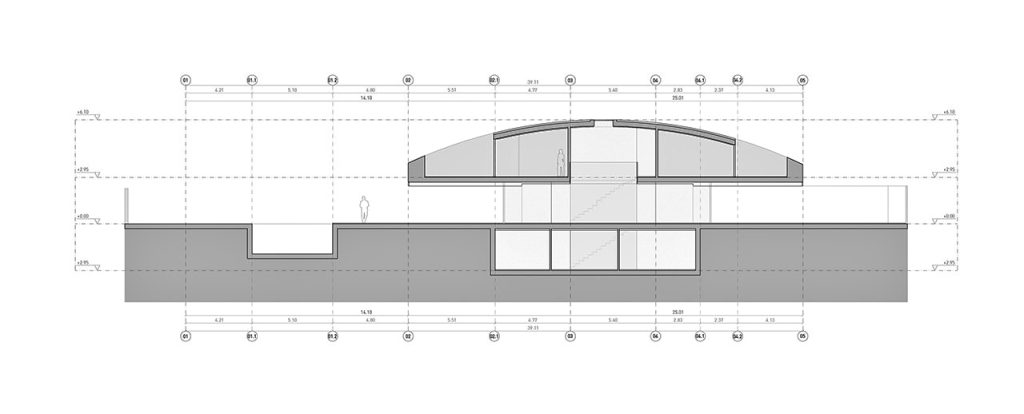 A privileged home visually immersed with a continuous aerodynamic facade, drawn through elliptical traces maximizing interior space while minimizing the volumetric impact on the site, Casa Balint make gazes blur the topography of the place, but revere the curved nature and lateral limits of this truly sublime structure.