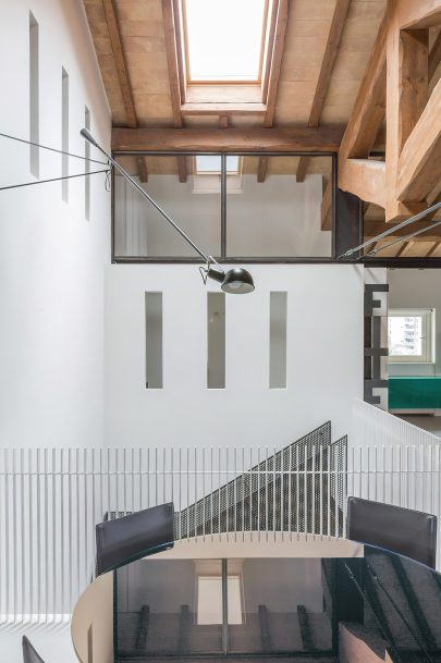 This welcoming open house was designed primarily for moments of conviviality with friends, but also to host the workshop of the owner. The archetypal shape of the farmhouse exterior is balanced by contemporary interiors which are spread over three floors.
