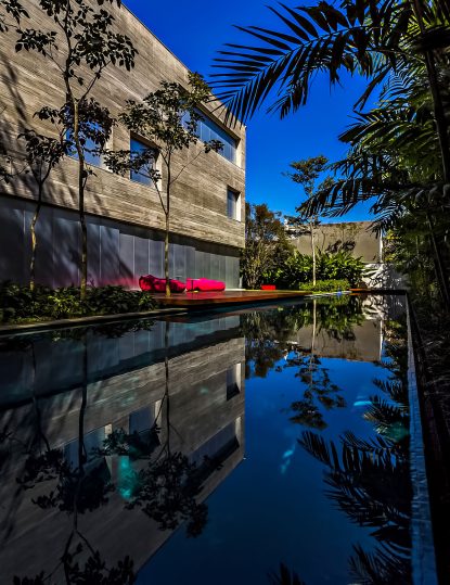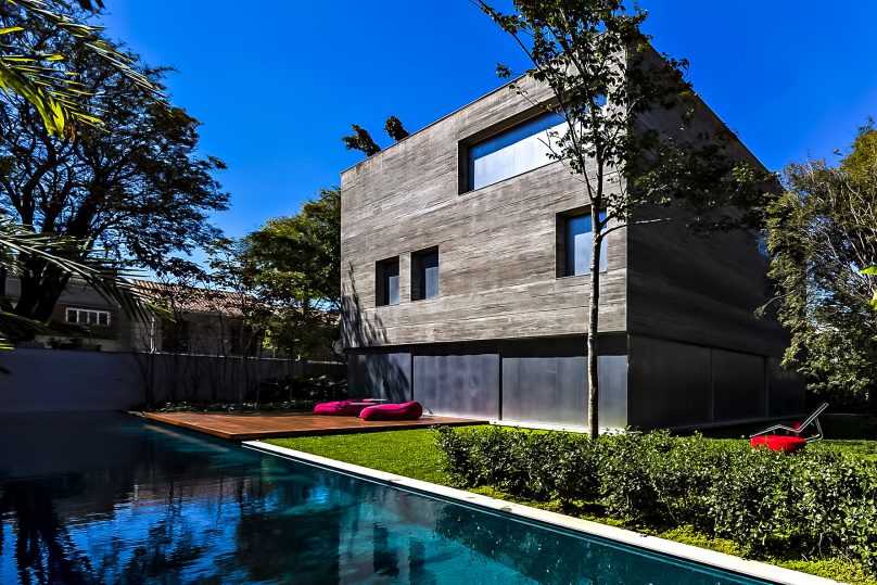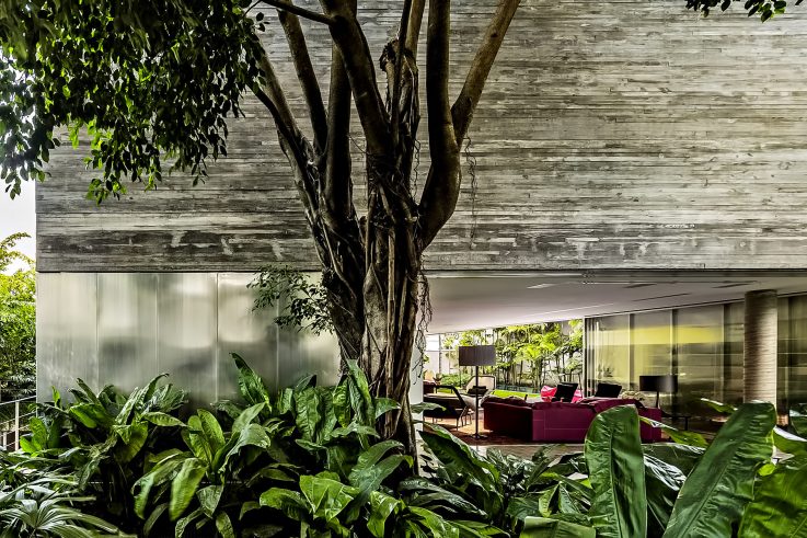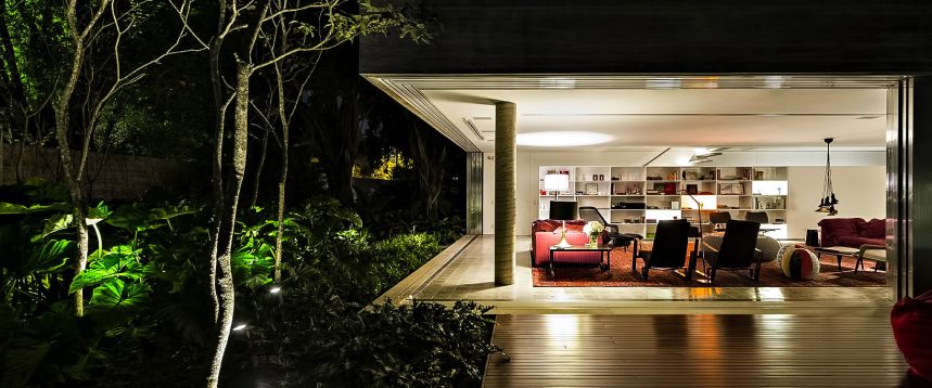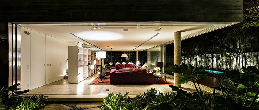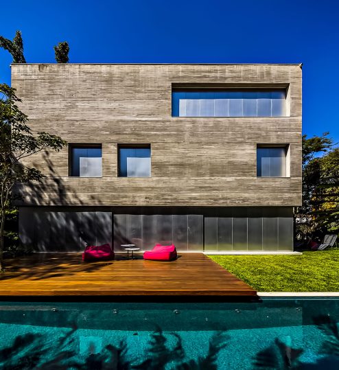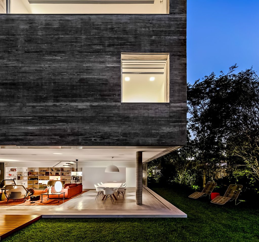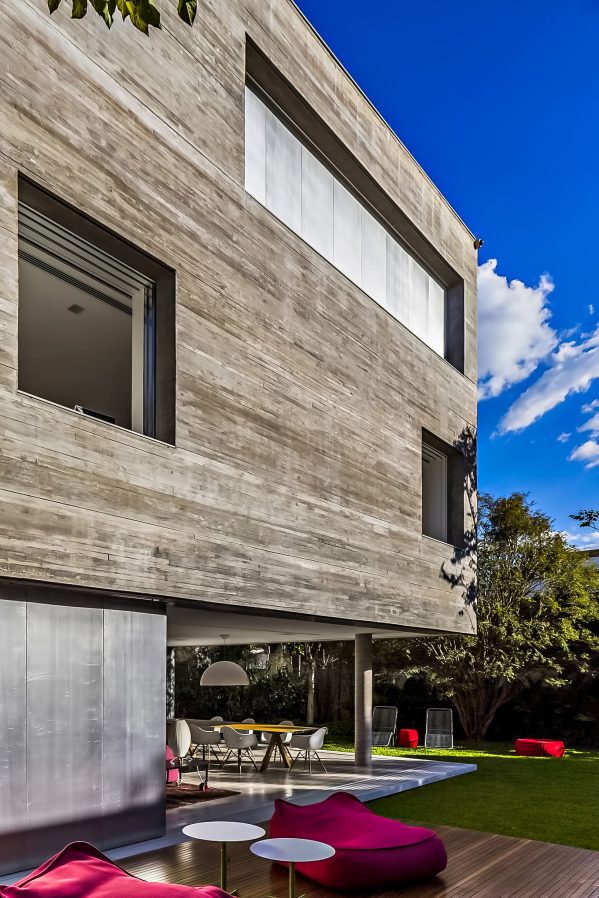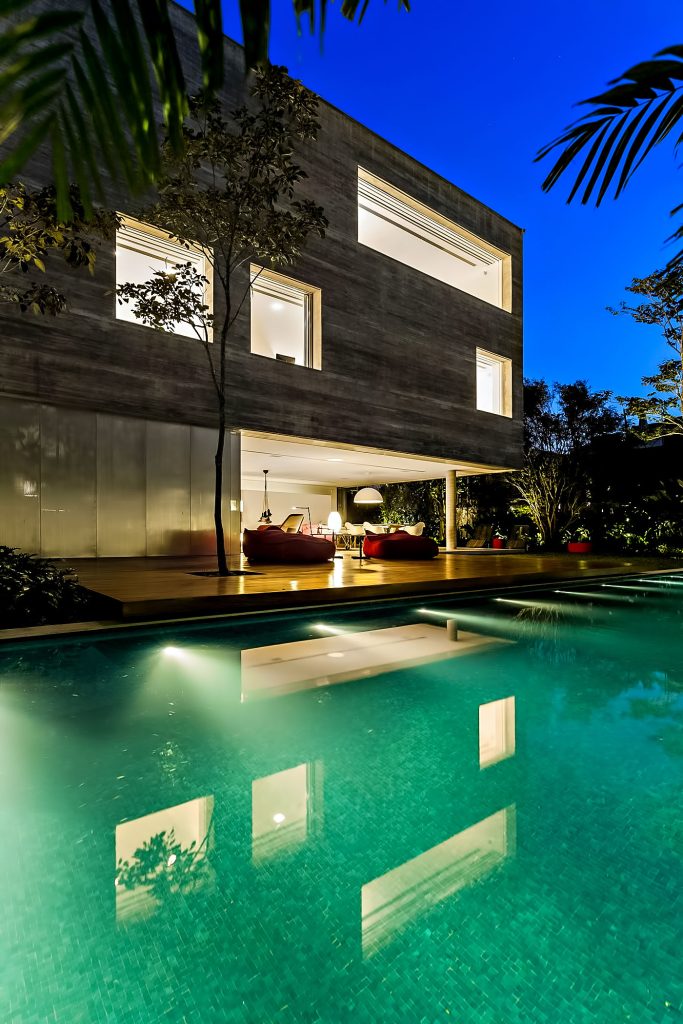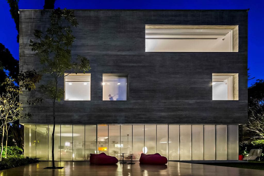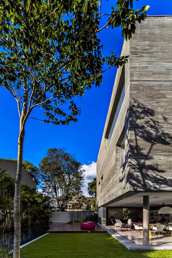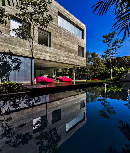 The Cube House is a luxury residence in São Paulo, Brazil designed as if it were a deconstruction of the volume from a cube. The subtracted bulk of the house makes it seem as if the residence is hovering over the ground, suspended on delicate round columns.