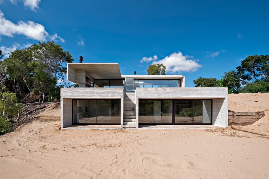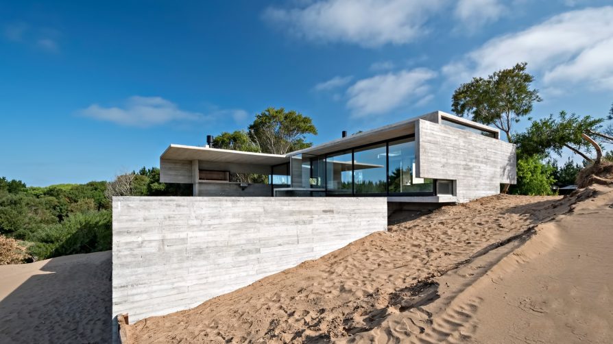 Located in a maritime district in the Partido de la Costa, thirteen kilometers north of the city of Pinamar and four hours from the city of Buenos Aires, the House in the Dune is a luxury summer home with an architectural archetype harmoniously linked to the topography of the lot with terrain that follows the topography of the natural dunes of the place.