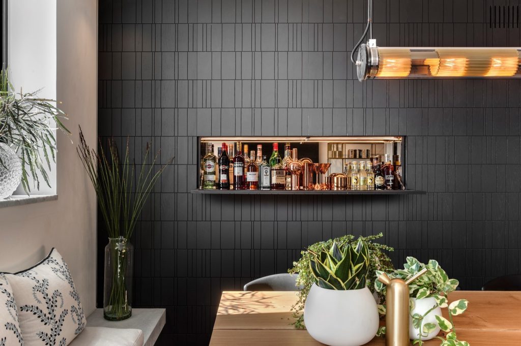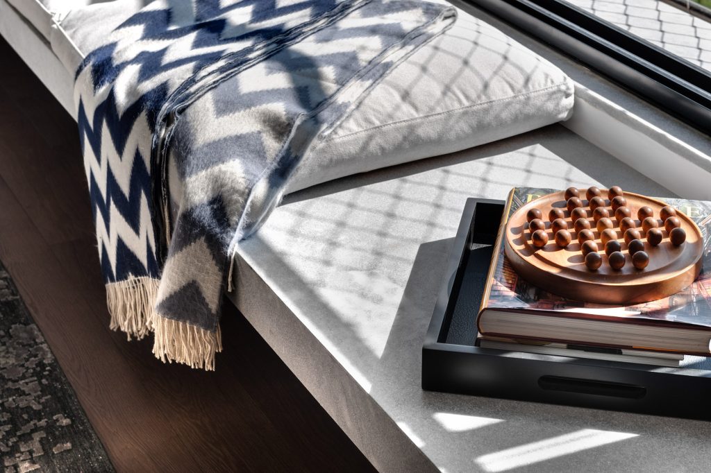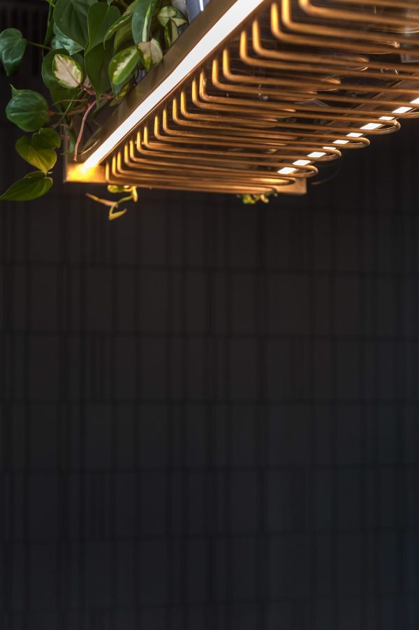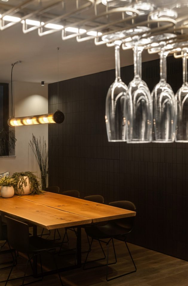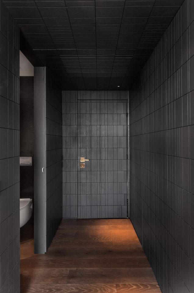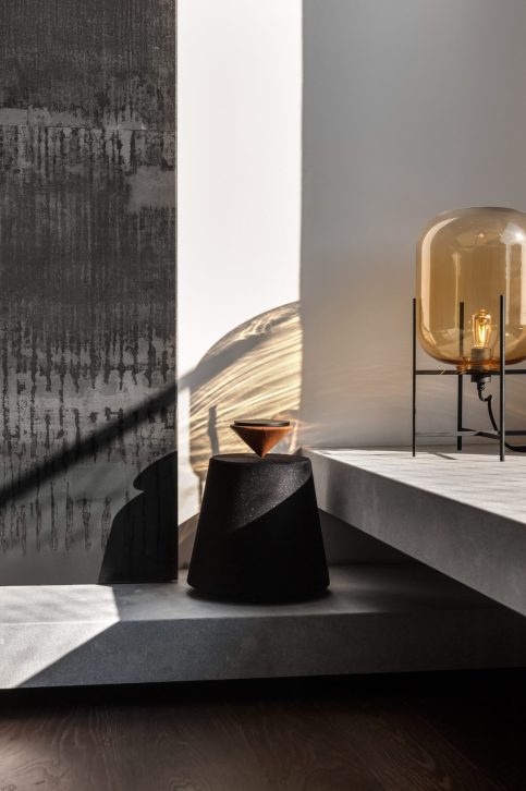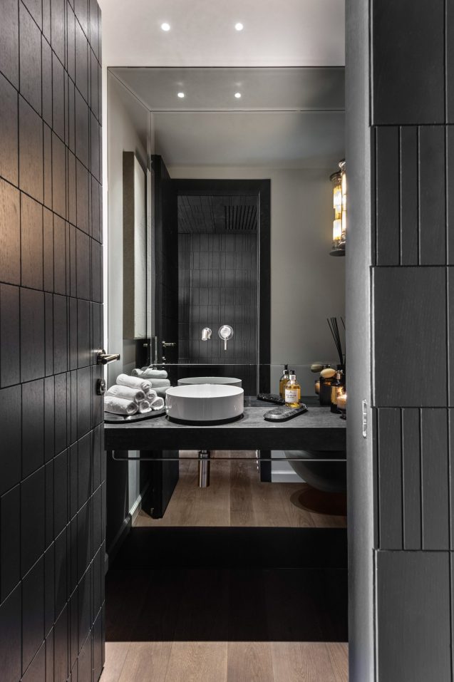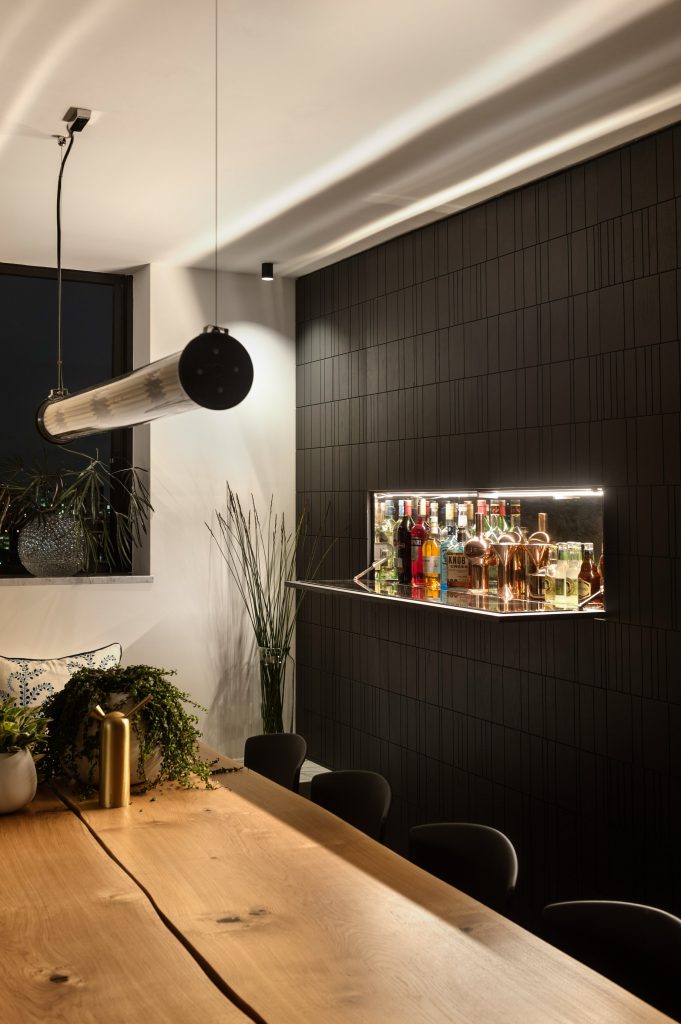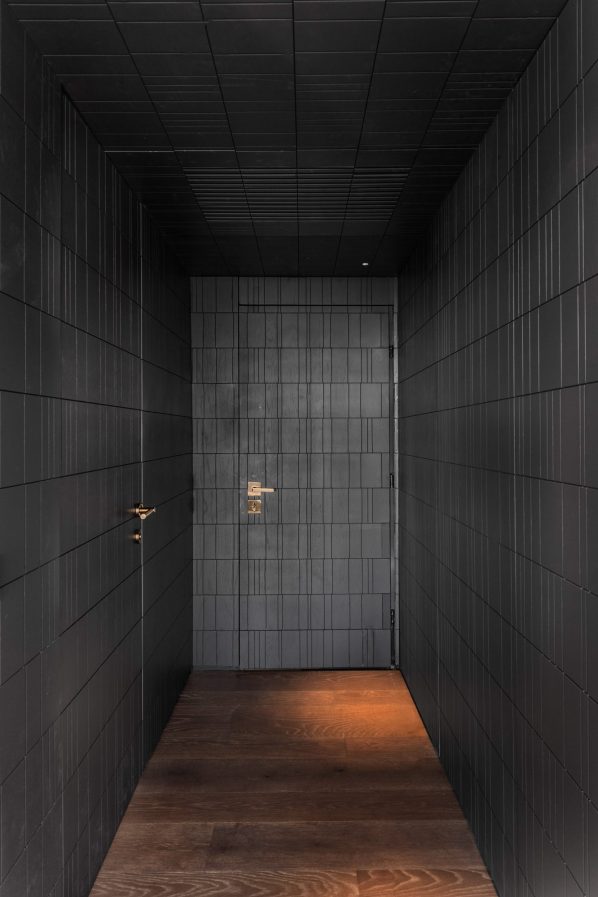 Linear geometric in the modularizations, the materials and the different ways they are presented, based on careful consideration and their emphasis using light and shade. Only natural materials emphasizing the strengths of the natural materials used. Thus, the interior presents itself as minimalist but very warm, with clean lines and forms based on precision and careful tuning of the fine details.