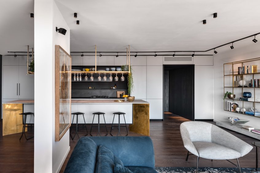 The design concept of this sensational apartment interior design in Tel Aviv is based on the reciprocal relationship between chic and casual. It is stylish, but not formal; sophisticated but not feigned; intelligent but not pretentious; creative, innovative and free of time dependent fashion.