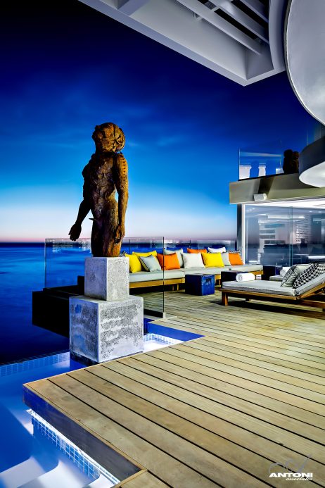 The epitome of luxury and style, the Clifton View 7 apartment is named for the first of two levels it occupies, within the premier position of a landmark multi-level cascading Clifton beachfront luxury apartment building. The stunning ocean vistas overlooking the infinity pool meld with a backdrop of crashing waves and cooling sea breezes to create an unparalleled luxury waterfront lifestyle experience in an unequaled location, evoking visceral tranquility.