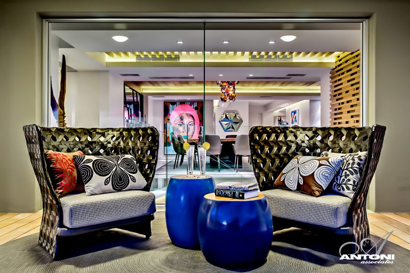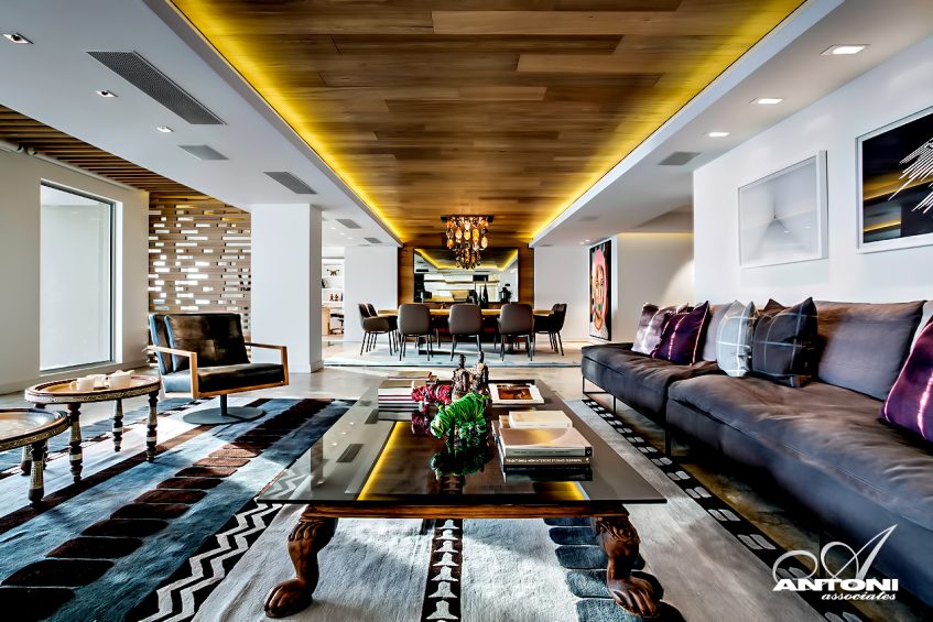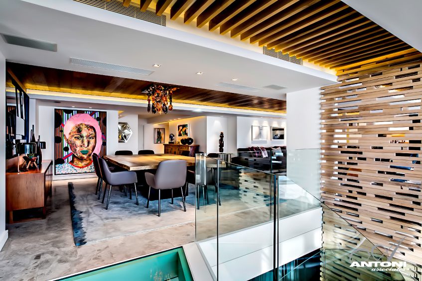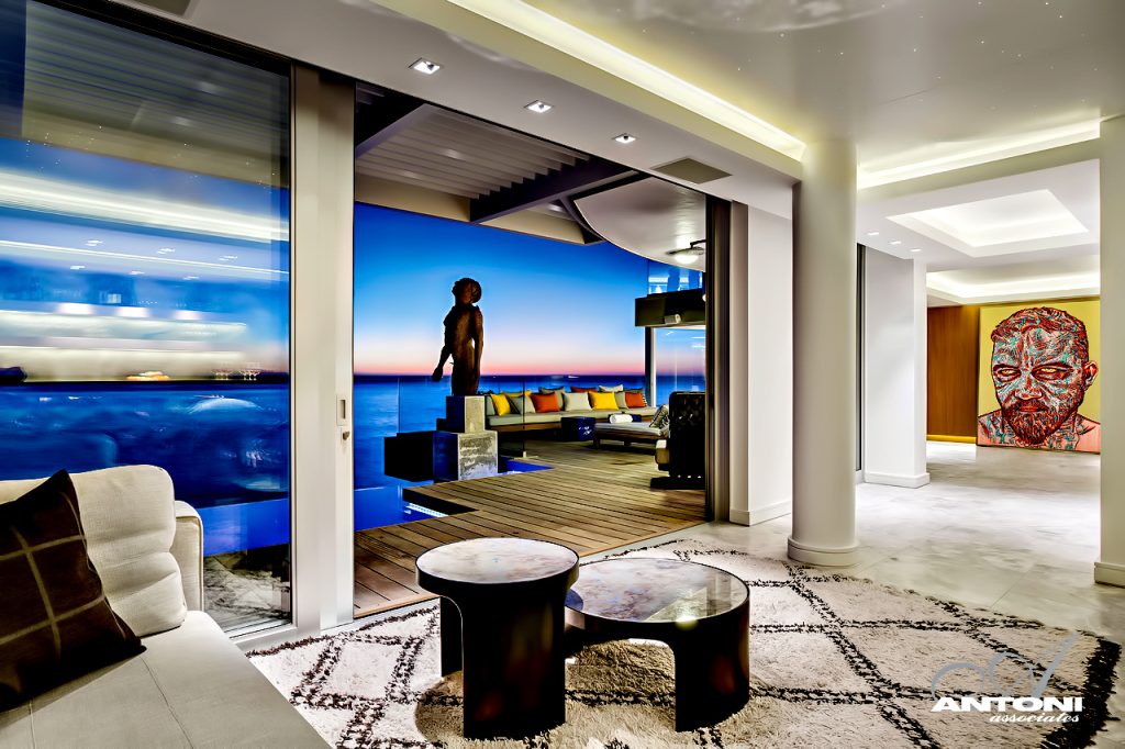 A spectacular contemporary vision of casual African opulence, with a taste of Bohemian style, the bespoke design and detailing of the apartment include stylistic juxtapositions and dramatic layers of magnificent interior design, achieving a fusion with bold art pieces that create a curated feel with unexpected layers of ‘wow’ factor. As you explore the interior, you feel as if you are a connoisseur of creativity, participating in a graphic symphony of stunning architecture and natural beauty, with a mesmerizing spectacle of ocean views seamlessly blending with the sounds of the sea and the soaring spectrum of the sky, arousing a continual inspirational appreciation of discovery.