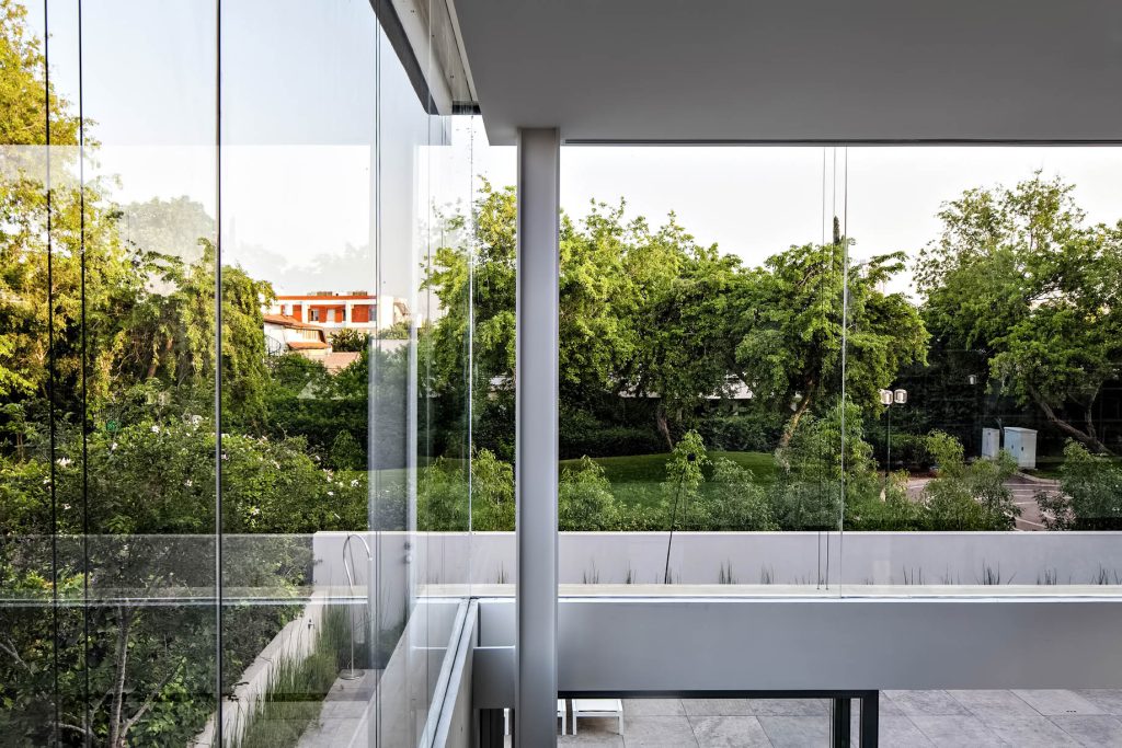 An alluring combination of exposure and illumination permeates throughout the residence. The front faรงade is an abstract creation conceptually assuring the blending of identity and function, while the rear facade graphically express three- dimensionality, all while probing the depth and feeling of brightness and freedom. A glance at the side facades explains the process beginning at the opaque facade facing the road and leading to the facades facing the yard and pool. A gradient of interยญchanging levels of transparency between characteristically different facades make this residence a de facto visual masterpiece of luxury architectural acumen.