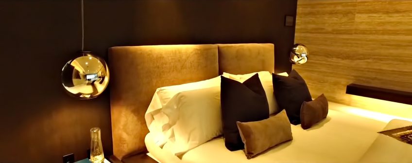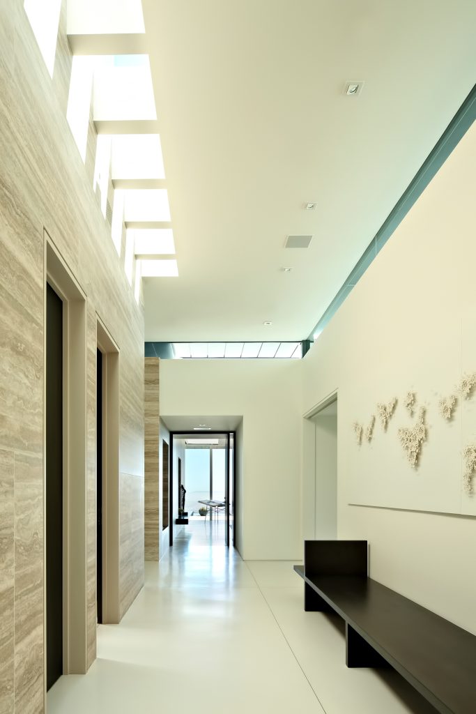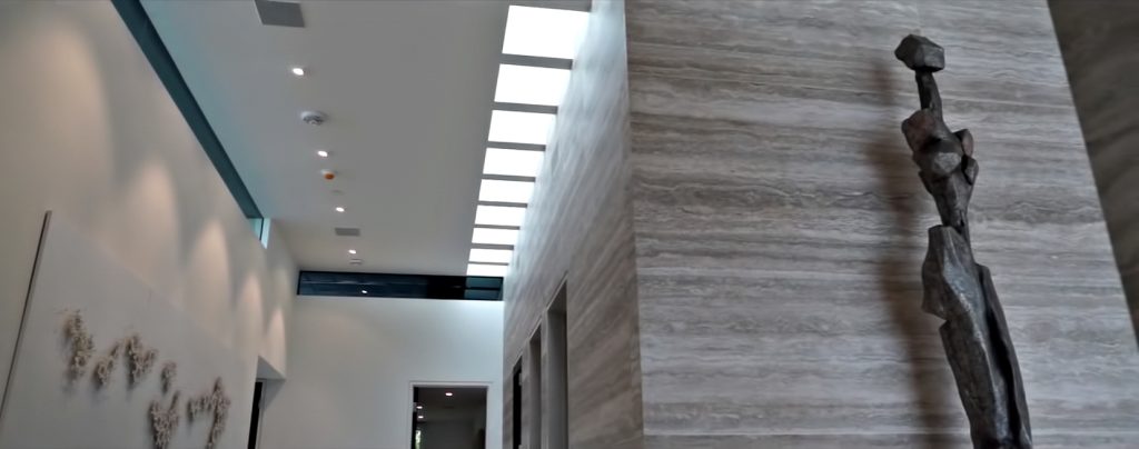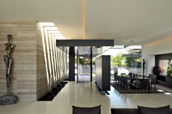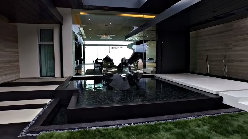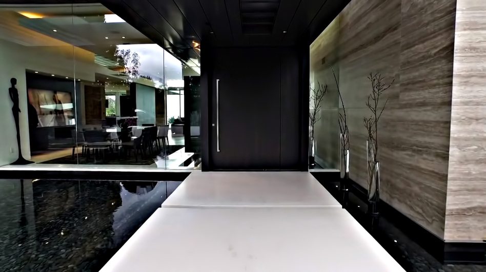 This private gated residence was designed by Michael Lee Architects as a true architectural masterpiece with notable volume, scale and superb attention to detail befitting its privileged environment. Anchored by a gorgeous water feature that greets you at the entrance of the residence where captivating art and water travel from the exterior of the house to the interior, the striking design exudes perfection.
