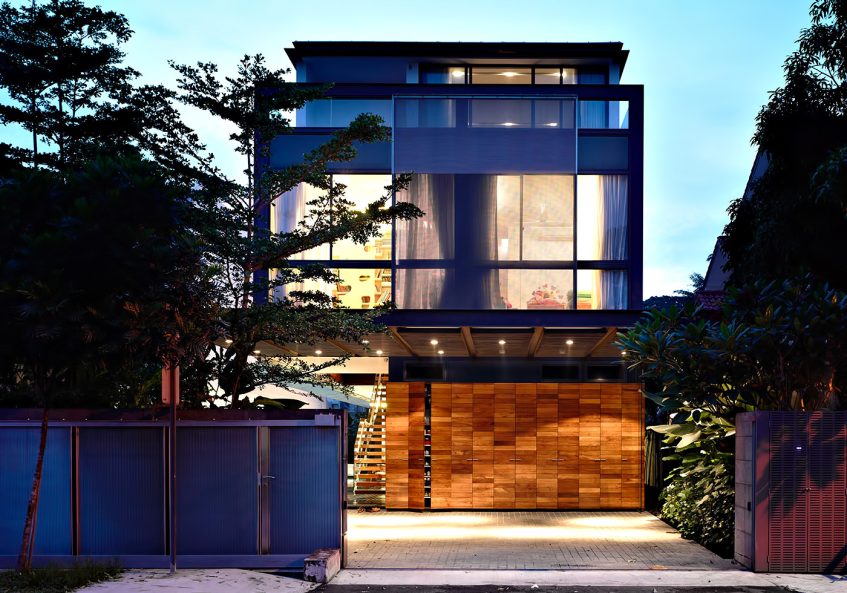 The first storey opens up to this space with the living, dining, and dry kitchen adjacent. The result is a bright airy open volume that permeates the residence to natural light and breezy airflow. This open concept embraces the concept of indoor living in an outdoor environment.