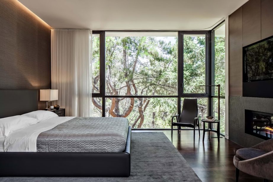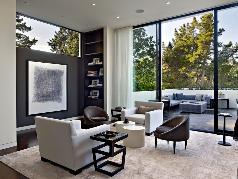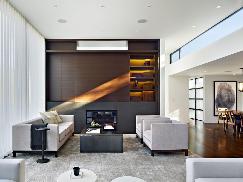 Amazing vision and attention to detail extends throughout the residence including such items as floor to ceiling windows throughout and an open rectangle in an interior wall to take advantage of light that saturates a stairwell, to create ribbons of light deep inside the home. Purposefully architected to create visible space, the kitchen, family and dining areas flow into one another delineated by interior design elements so that as you walk through the house, it unveils itself.