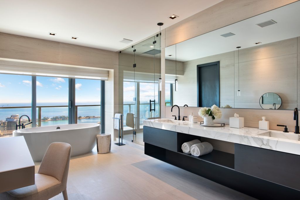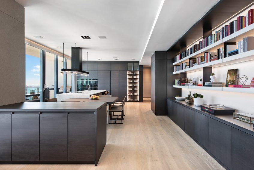 This stunning apartment is a modern mixology of extravagant cutting-edge contemporary interior design achieved with a complete makeover of a private Miami residence at the Echo Brickell by Blanca Wall of The Wall Studio. A sky-high renovation was required to combine two separate apartment units into one, culminated in an open flow layout with truly spectacular vistas overlooking Biscayne Bay.