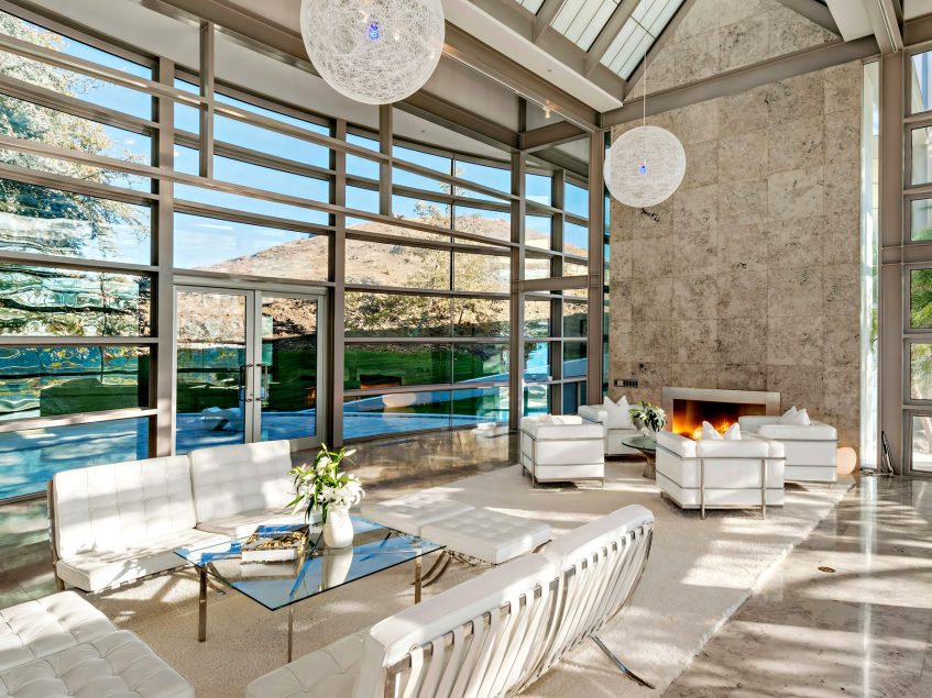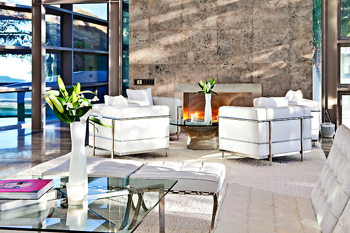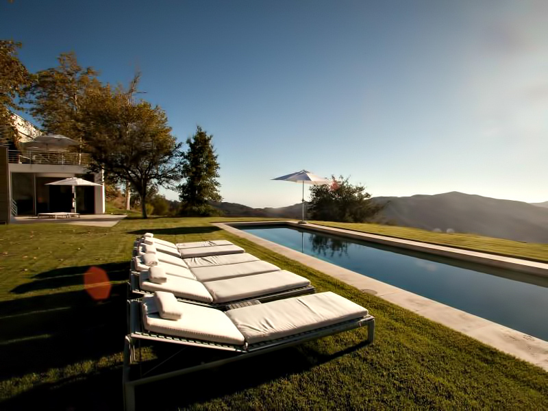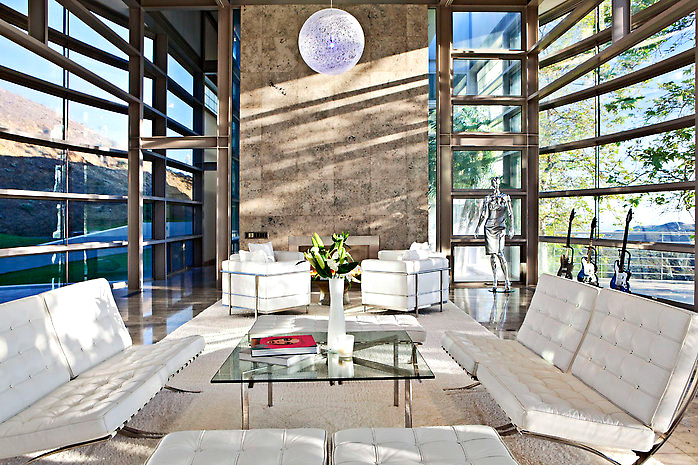 The vertiginous Henman House residence is a modern manifestation of luxury. The private gated estate incorporates amenities befitting rock star royalty including an underground music studio, a sixty-foot lap pool overlooking the California coast, a helipad that doubles as a driving range, and an underground garage with a full complement of parking for up to twenty-five cars on the property. All this with an unrivalled location surrounded by dramatic mountains with endless jaw-dropping views that is as inspiring as the monumental architecture of the residence.