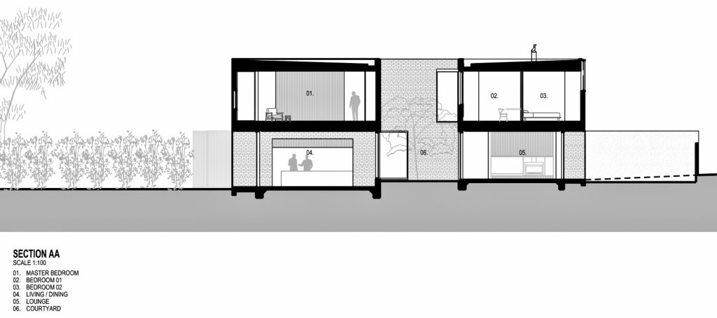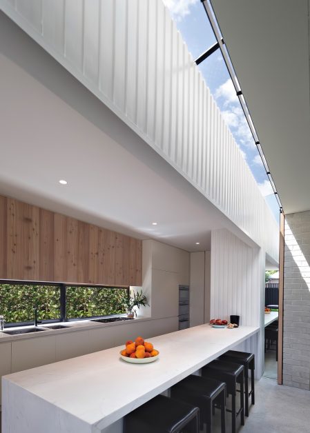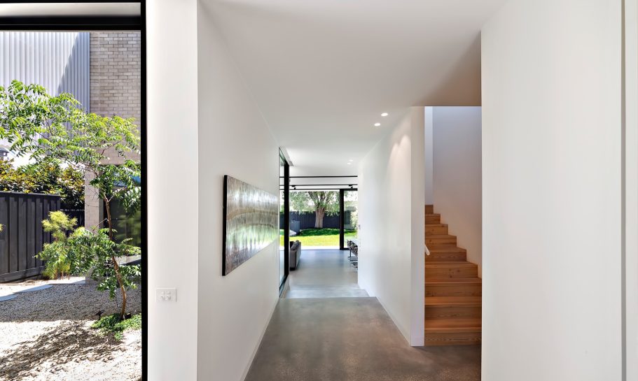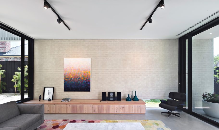 This vision was achieved through the use of three distinct yet inter-linked garden spaces framing the building allowing the house to adapt to changing needs. Living spaces are located on the ground floor with connecting vistas through to the garden and central courtyard. Bedrooms are located on the upper level of the house and have operable shutters to ensure privacy and control views and outlook to the surrounding landscape.