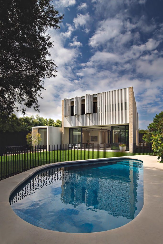 Composed as a series of interlocking rooms and gardens shaped like a battle-axe design to create spatial variety, the Hidden House is a luxury residence that provides tranquillity and seclusion from the urban environment of its setting while balancing occupant amenities and protecting privacy from the surrounding area.