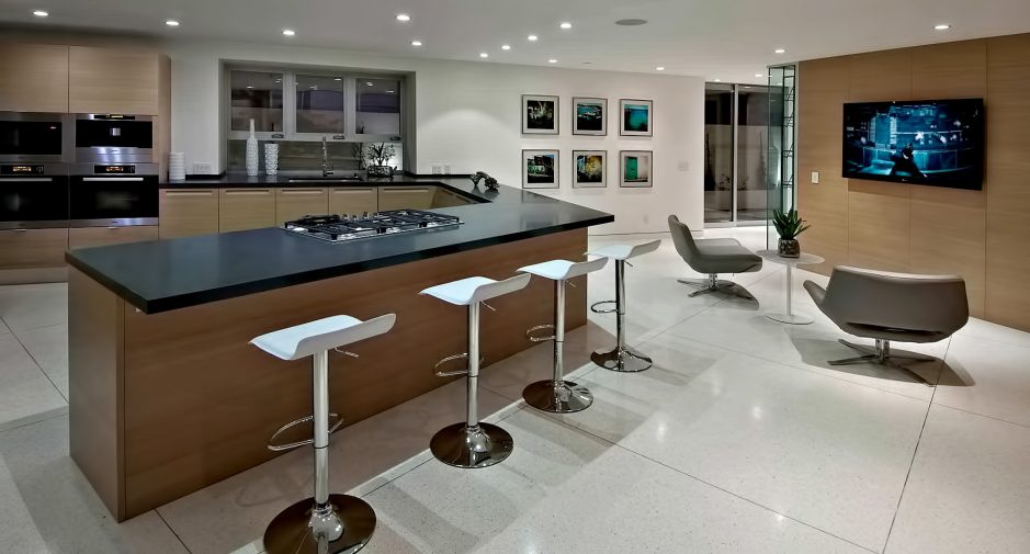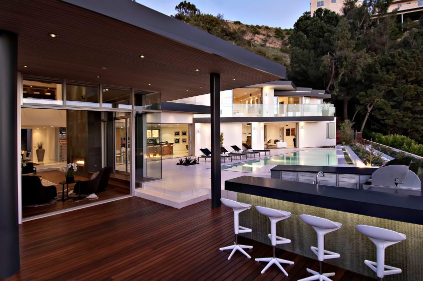 Flawlessly designed and crafted with the highest quality materials and accouterments with finishes that include baltic stone, caesarstone, echo-composite stone, oak flooring, custom aluminum doors, Philippe Starck fixtures, terrazzo flooring. Built to an uncompromising design with the finest quality construction, the residence includes a huge outdoor space with infinity pool, spa, stainless steel bar and exterior fire-pit for lavish entertaining. A dramatic two-story Living room with Ipe and Cedar wood ceilings, indoor & outdoor family room with fireplace, dining room & beautiful open and sophisticated kitchen provide the utmost in exclusive luxury living with complete privacy.