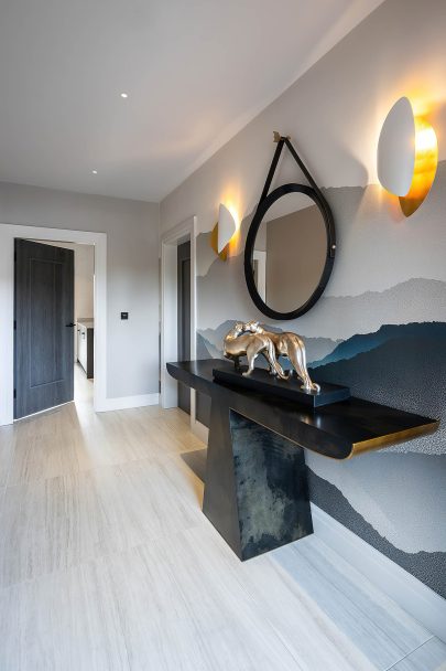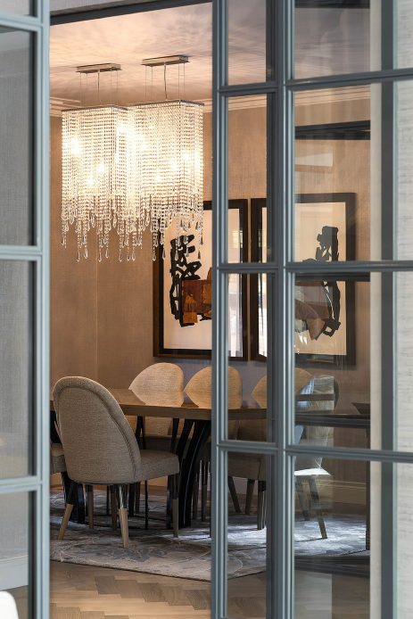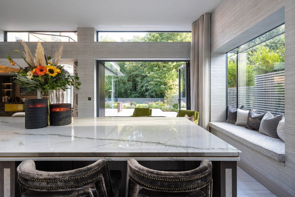The five-bedroom family home has been redesigned with an impeccably detailed interior scheme, using specialist joinery & wall finishes, alongside bespoke furnishings and decorative lighting to create a beautiful & functional home for modern family living. The open plan space provides a wealth of natural light & opens directly onto the beautifully landscaped garden & terraces. Almost every item was custom designed by Kris Turnbull Studios to create the ultimate in luxury living.