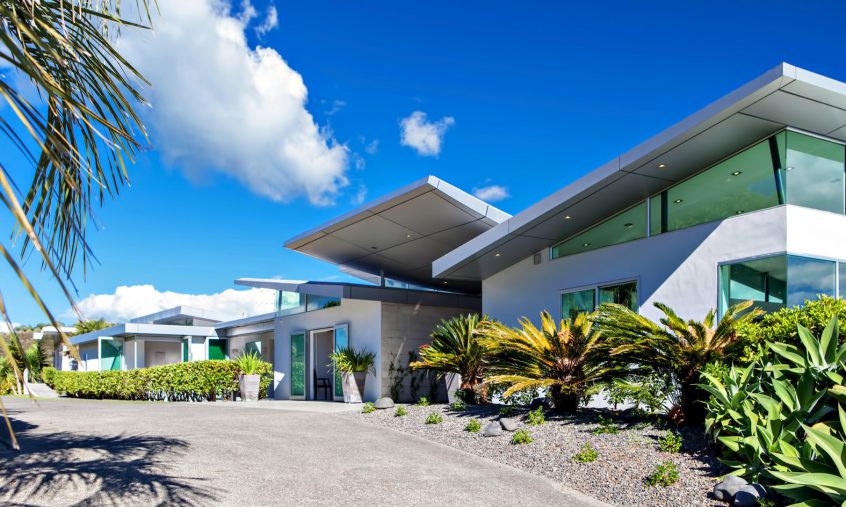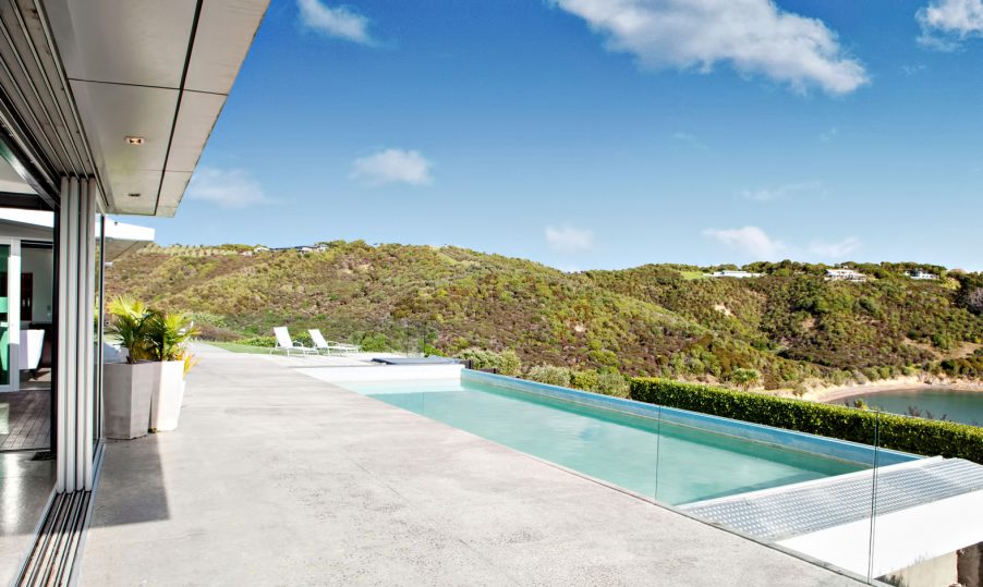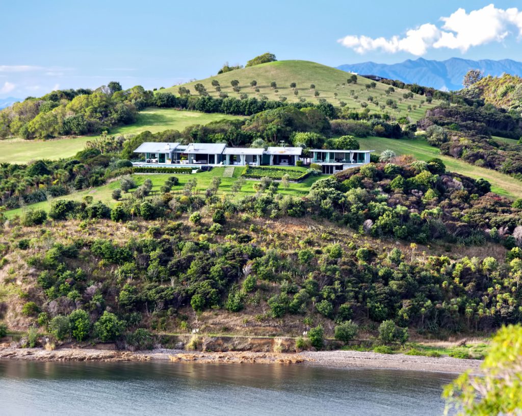 Consisting of two parts, a main house and an adjoining cottage, this distinctive residence was designed to cater to large groups or families looking for a peaceful holiday experience amid natureโs stunning bounty. Located within the gated Matiatia Estate complex on Waiheke Island, this sophisticated single-level luxury home boasts large floor-to-ceiling windows and glass doors that provide a seamless transition from the indoors to the outdoors and expansive panoramic views over Owhanake Bay and across the Hauraki Gulf out to Little Barrier Island.