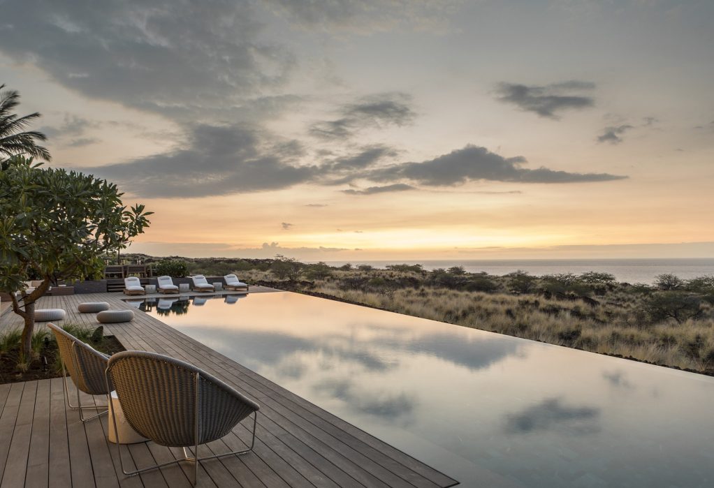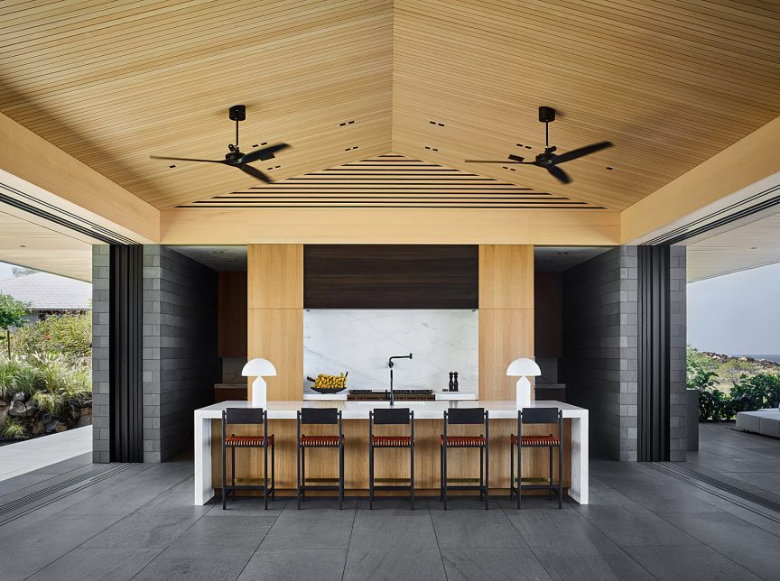 The ultimate getaway and home away from home, situated along a rugged stretch of Hawaii coastline, this family retreat embraces the spirit of Mauka-Makai, the symbolic flow of lava from mountain to sea, through its direct connections to the volcanic landscape and dramatic vistas of the Pacific Ocean.