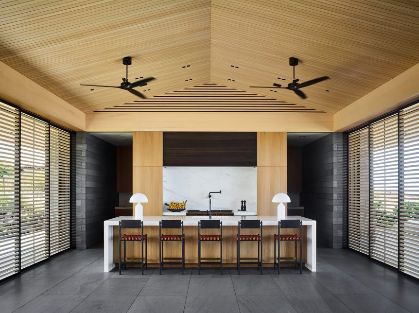 “A delicate response to the landscape, the house is meticulously detailed to thoughtfully transition between the natural and manmade, interior to exterior, and heavy and light.” – Juror, 2019 AIA Honolulu Design Awards
