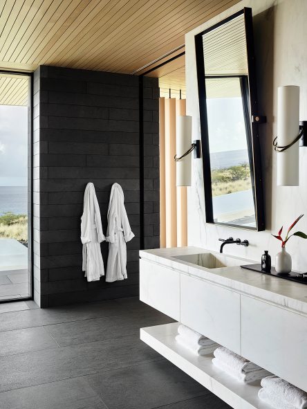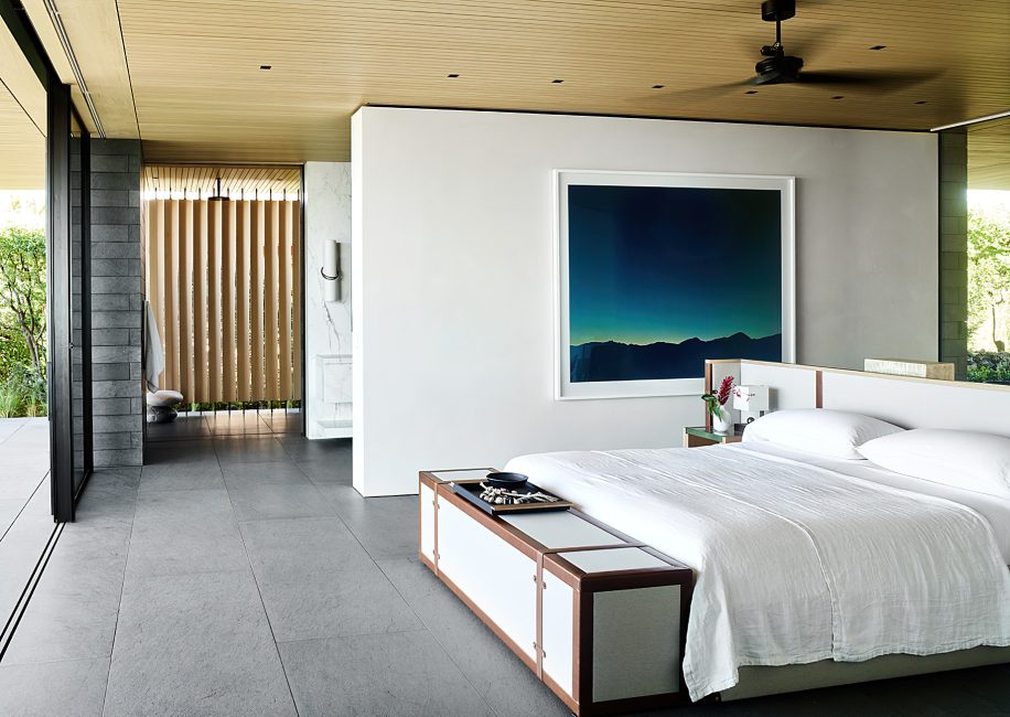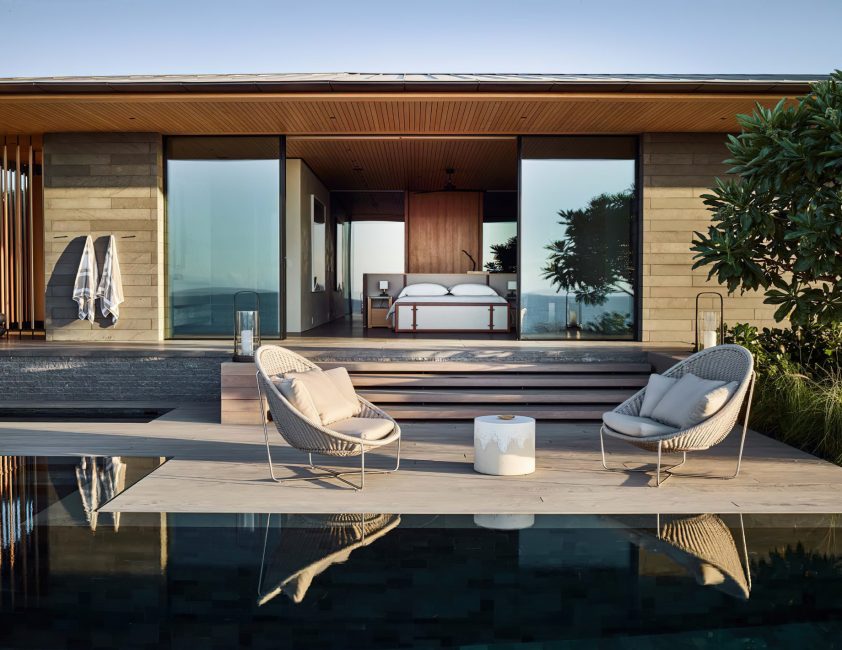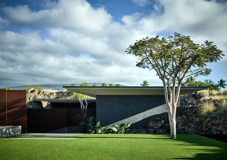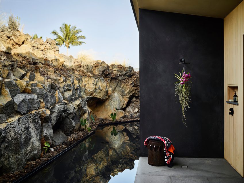 “While the floor-to-ceiling sliding doors open to dramatic vistas, it is also clear that this home does not rely entirely on its incredible views. There are quiet moments such as the guest bedroom facing a calm water feature carved into lava, which is a place of unexpected, serene beauty.” – Nicole Hollis