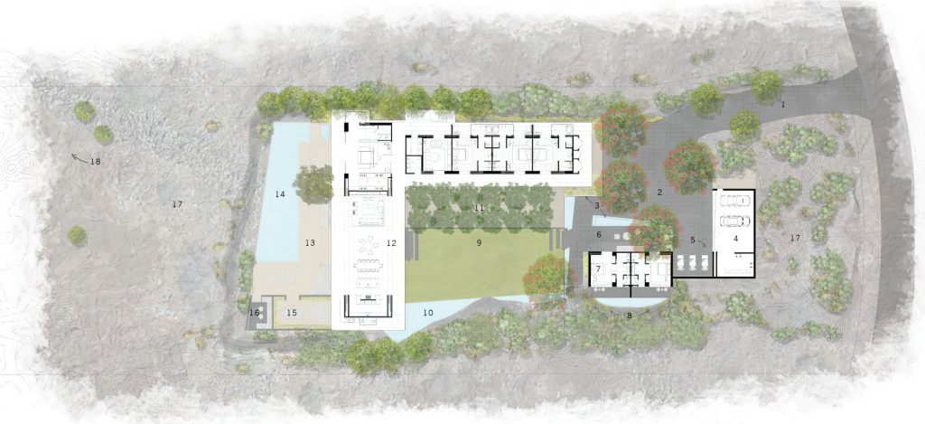 With clean lines, large openings and simple geometries, the horizontal structure mirrors the ocean’s horizon and provides an elegant transition from lava to sea.
