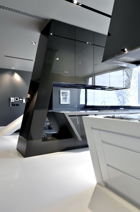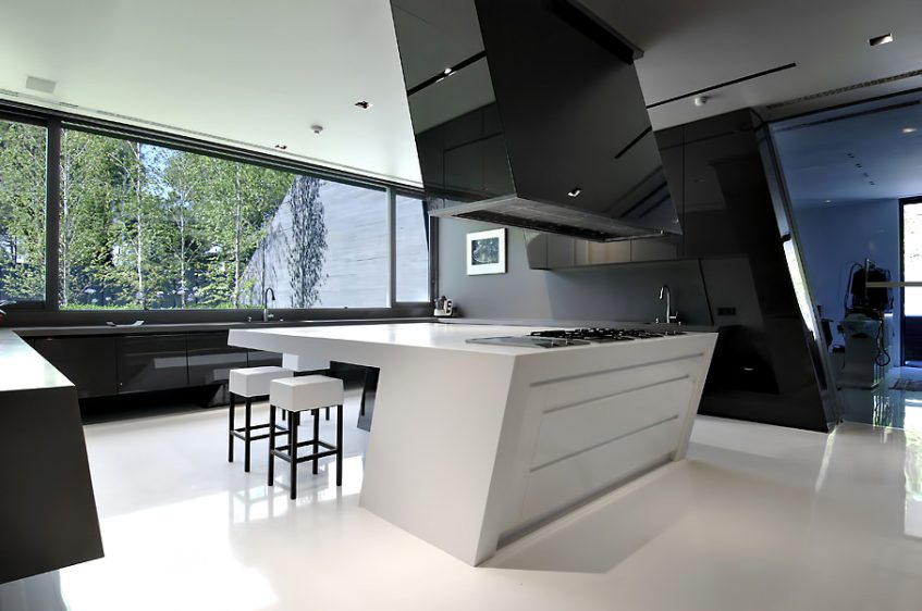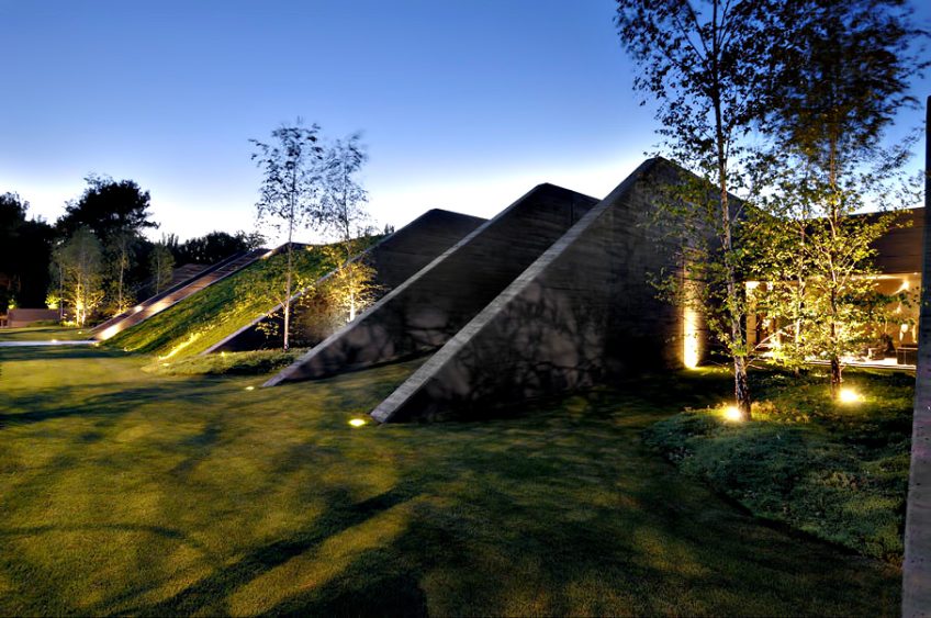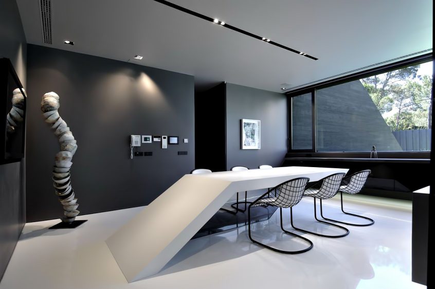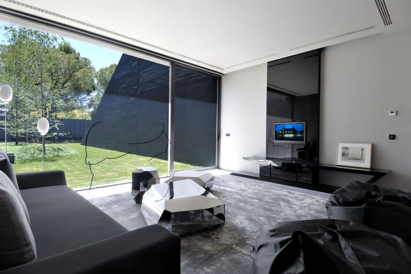This sensationally monolithic mega structure is the work of renowned Spanish Architectural firm A-cero. Formed in large sculptural volumes of pewter grey concrete, this exclusive luxury residence is located on the outskirts of Madrid in Spain. The futuristic 17,555 sq. ft. structure is literally built into the landscape.