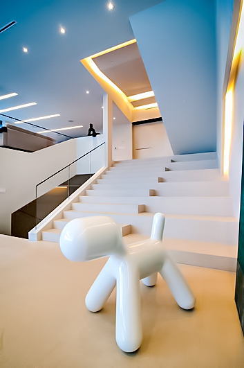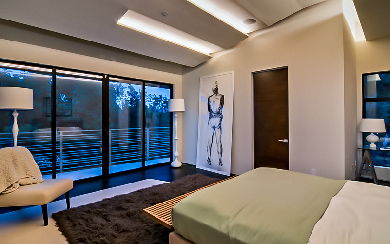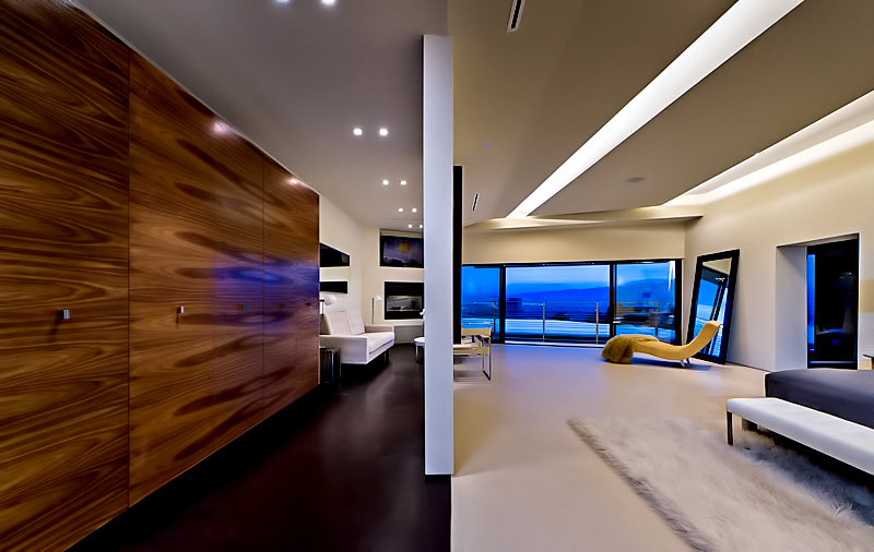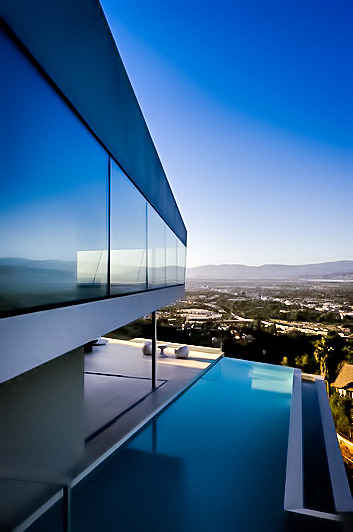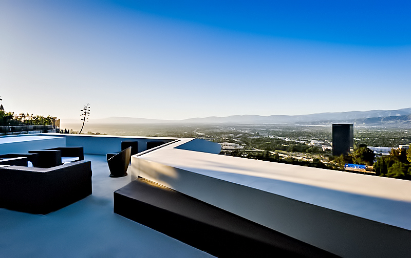 This exquisite low-profile architectural estate was built to coincide with the strict guidelines imposed by the City of Los Angeles’s Mulholland Scenic Corridor Specific Plan and the Mulholland Scenic Parkway ordinance, which established land use controls, and a design review process tailored to ensure that development within the Parkway is compatible with the unique character of the Santa Monica Mountains. The plan was adopted by the Los Angeles City Council in 2003 to address the publics desire to restore the magnificent views and natural character of the Mulholland Drive setting that was being threatened by unrestricted development.