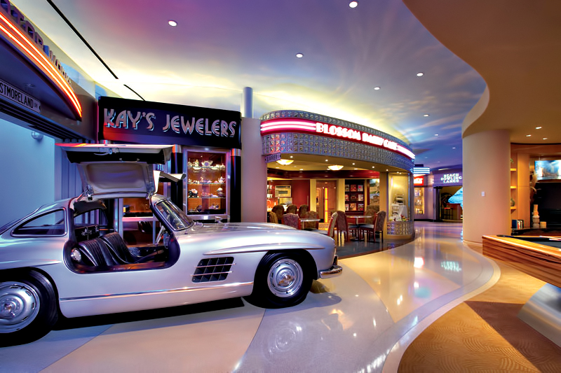 The lower level of the residence offers additional living spaces, plus absolutely jaw-dropping recreational and entertainment facilities. Indoors, youโll find a full-sized bowling alley, large workout area, and recreation room with pool table, a stunning full-sized theatre experience and even an authentic 50โs soda fountain. At the far end, an enormous multi-purpose arena is perfect for everything from a classic car museum to a ballroom gala. Outside is the ultimate backyard, a sheltered grotto cove ideal for quiet relaxation, family fun or large parties of a hundred or more. Wide, comfortable patios wind along the plush lawn. Waterfalls and fountains sparkle in the sun, and a twisting tunnel slide plunges into the swimming pool. A warm-water rock spa is tucked into the grotto cliff, as are hidden changing and powder rooms. Itโs all totally private and completely protected from cool ocean breezes.