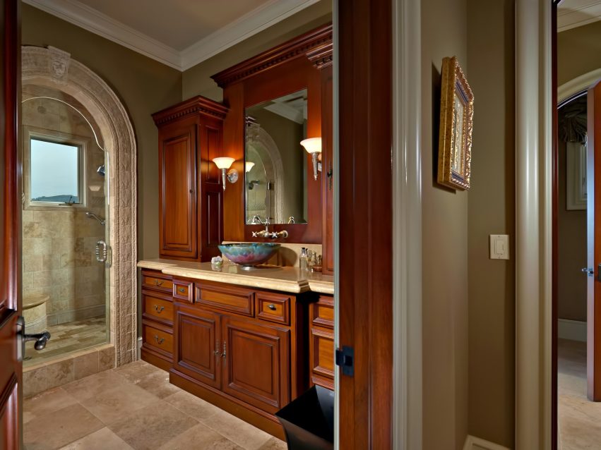 The truly one-of-a-kind residence includes a total of 4 bedrooms with 6 baths over 3 levels, all serviced by a main elevator that goes down to an enormous 2,700 sq. ft. subterranean 6 car garage. The singular promontory location of the residence offers a combination of landmark views with a timeless setting where its residents can enjoy classic California living with luxury Mediterranean style.