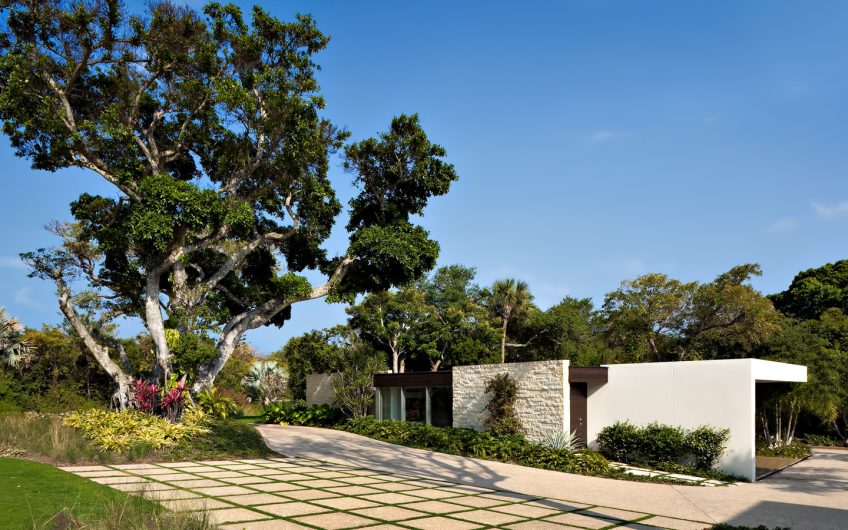 Architected as a complex composition, reminiscent of the canvases of Georges Braque, this 12,985 sq. ft. luxury waterfront residence in Seawall’s Point, Florida was created with geometric forms that appear and disappear in a constant dance of illusion and materiality orchestrated to conceal and reveal dramatic views to the water.
