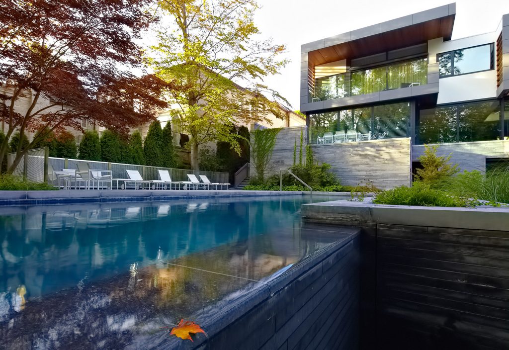 Designed for a large double lot in a premier neighborhood in north Toronto, the Stone House luxury residence is split between providing a space that can take advantage of the siteโs abundant natural features and also serve as a hub for a growing family.
