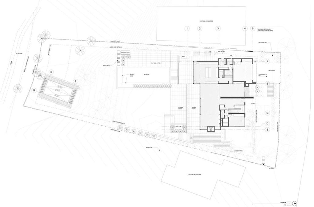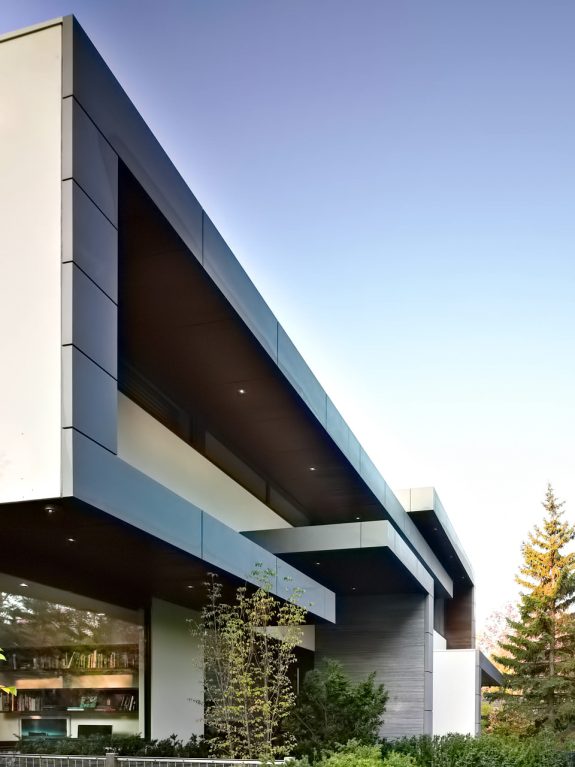 The architecture and landscape design at the front of the building have been choreographed to allow for an abundance of natural light and a feeling of airiness without sacrificing privacy. A simple, yet enduring material palette blends plaster and zinc cladding with various natural woods and stones. This is sublime modernism composed with purpose.