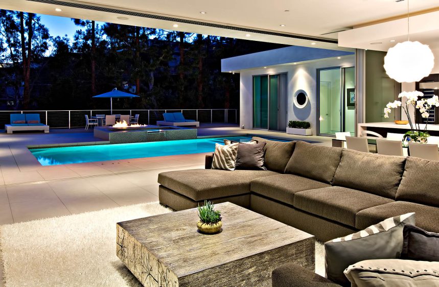 The tranquil master suite offers beautiful vista views and features a large walk-in closet and luxurious bath with dual vanity, soaking tub, and steam shower. Three additional bedrooms suites each have their own gorgeous baths. The foresight of design is evident with the kitchen, dining area and family room all combining to create a sleek wide-open great room that opens to a sparkling pool and spa all overlooking sweeping shimmering views of Los Angeles. This extraordinary contemporary home truly embodies the glamour, luxury, and sophistication of Beverly Hills.