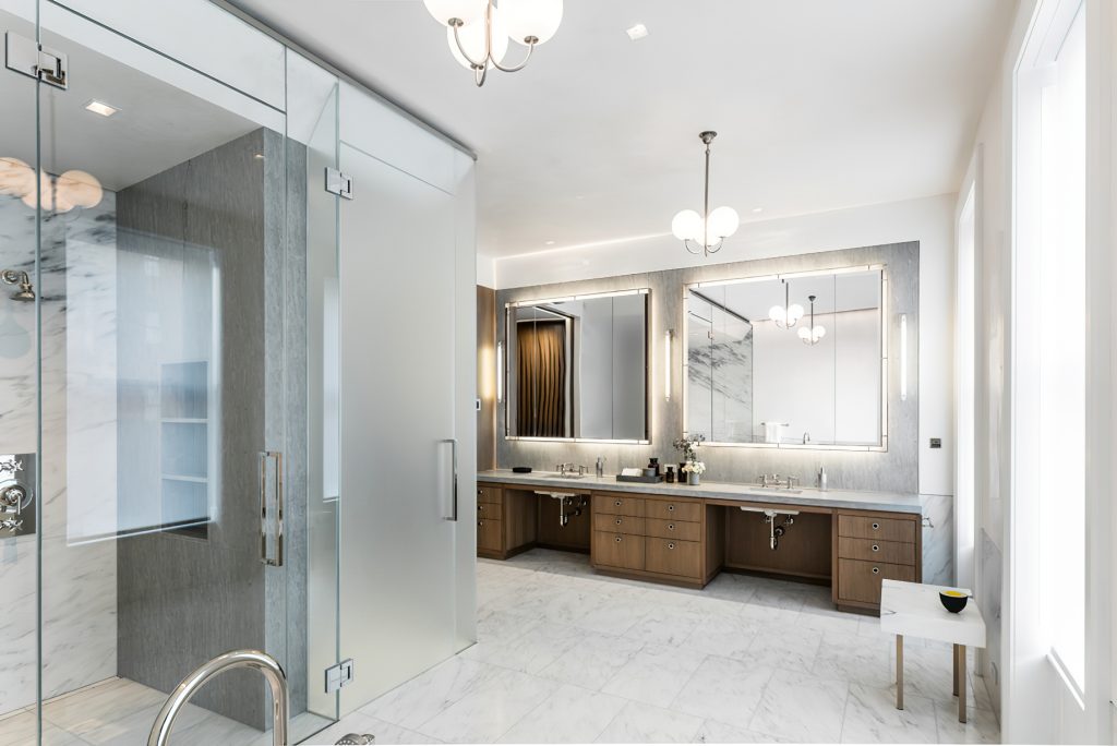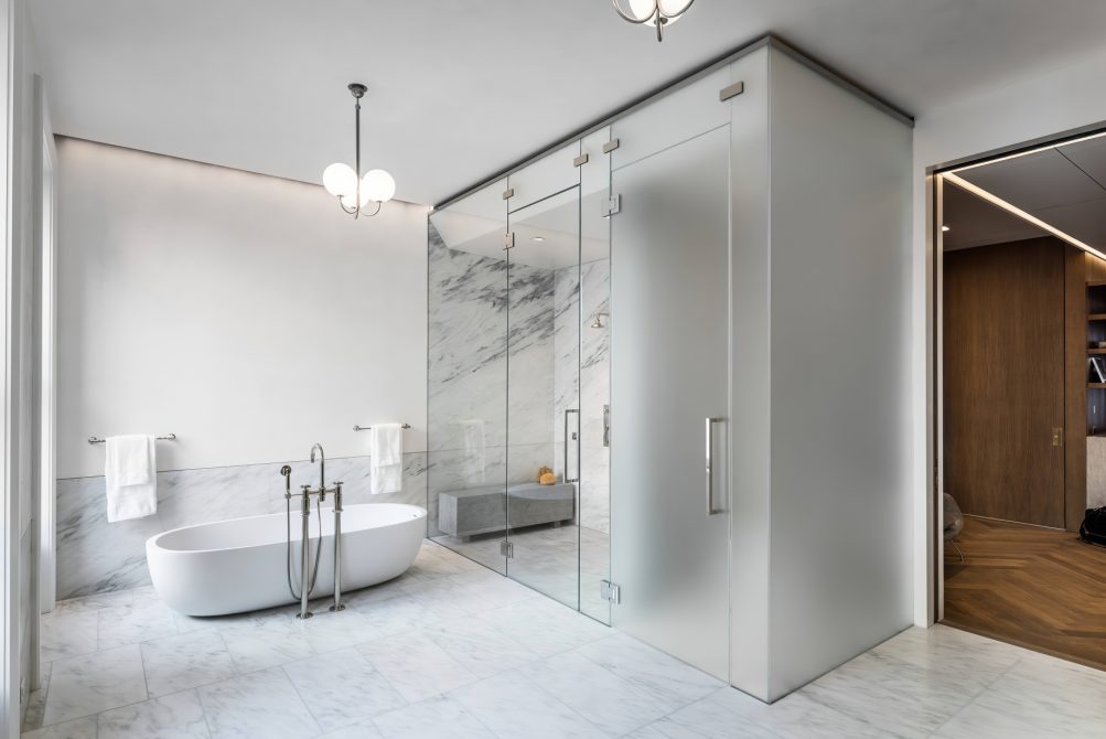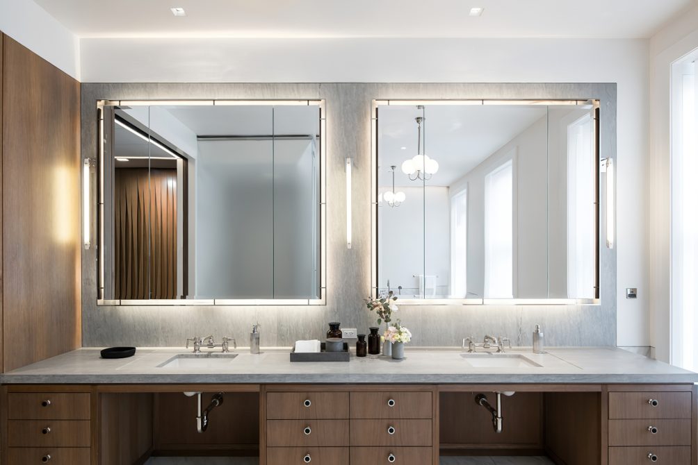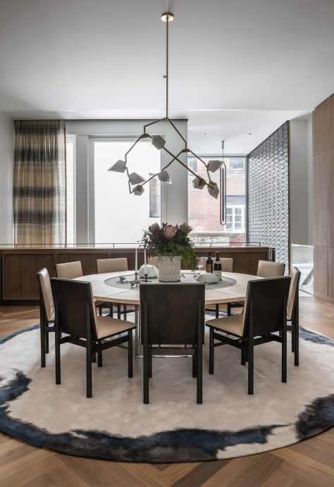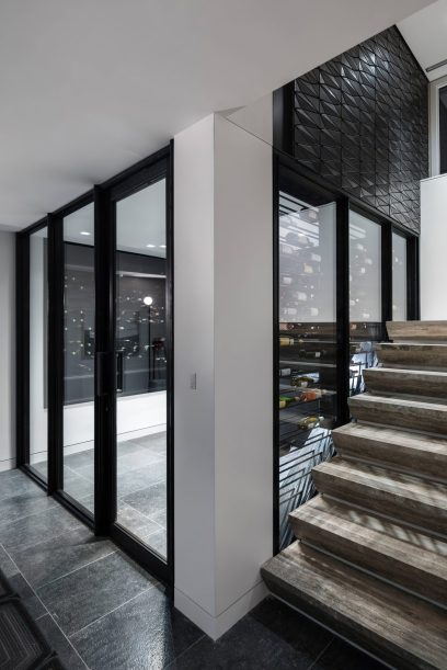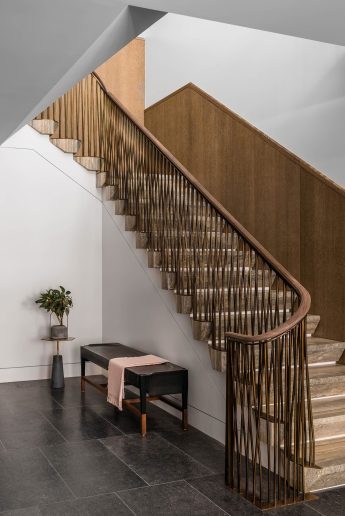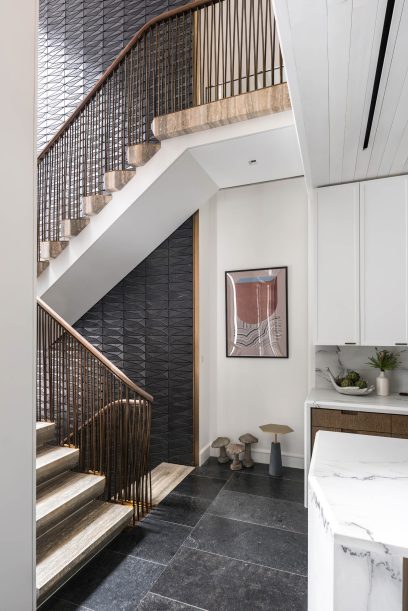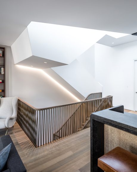 Conceived as both a family home and a setting for large-scale entertaining and events, the house is organized around multi-directional and multi-level circulation. Opportunities for light, air, and circulation to enliven the interior and exterior on the highly constrained site were developed through generous vertical openings and glazed double height spaces that emphasize the building’s grand proportions and create visual and spatial connections between floors.