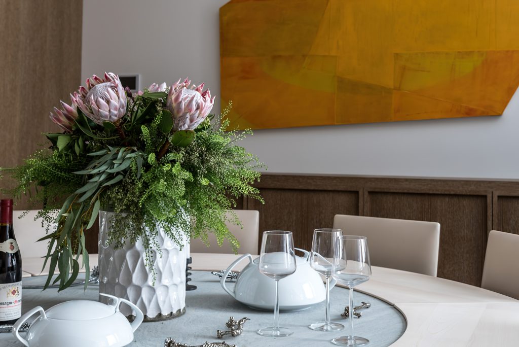 Throughout the house, works of design by emerging and independent American designers and studios is integrated with significant works of modernist design from Italy, Scandinavia, and the United States. Much of the contemporary furniture was custom designed for the house primarily through designer commissions, including a number of custom pieces by MKCA.