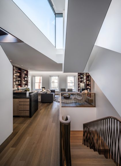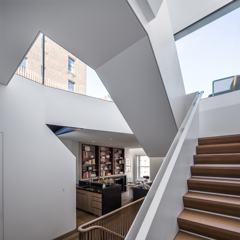 The reinvention of a badly degraded, but significant 1879 Neo-Grec landmarked townhouse on Manhattan’s Upper East Side negotiates and balances the building’s history and context with a desire for a forward-looking, contemporary residence. This is accomplished largely through an exceptional attention to craft, augmented by digital methods for design, coordination, and a broadly collaborative approach.